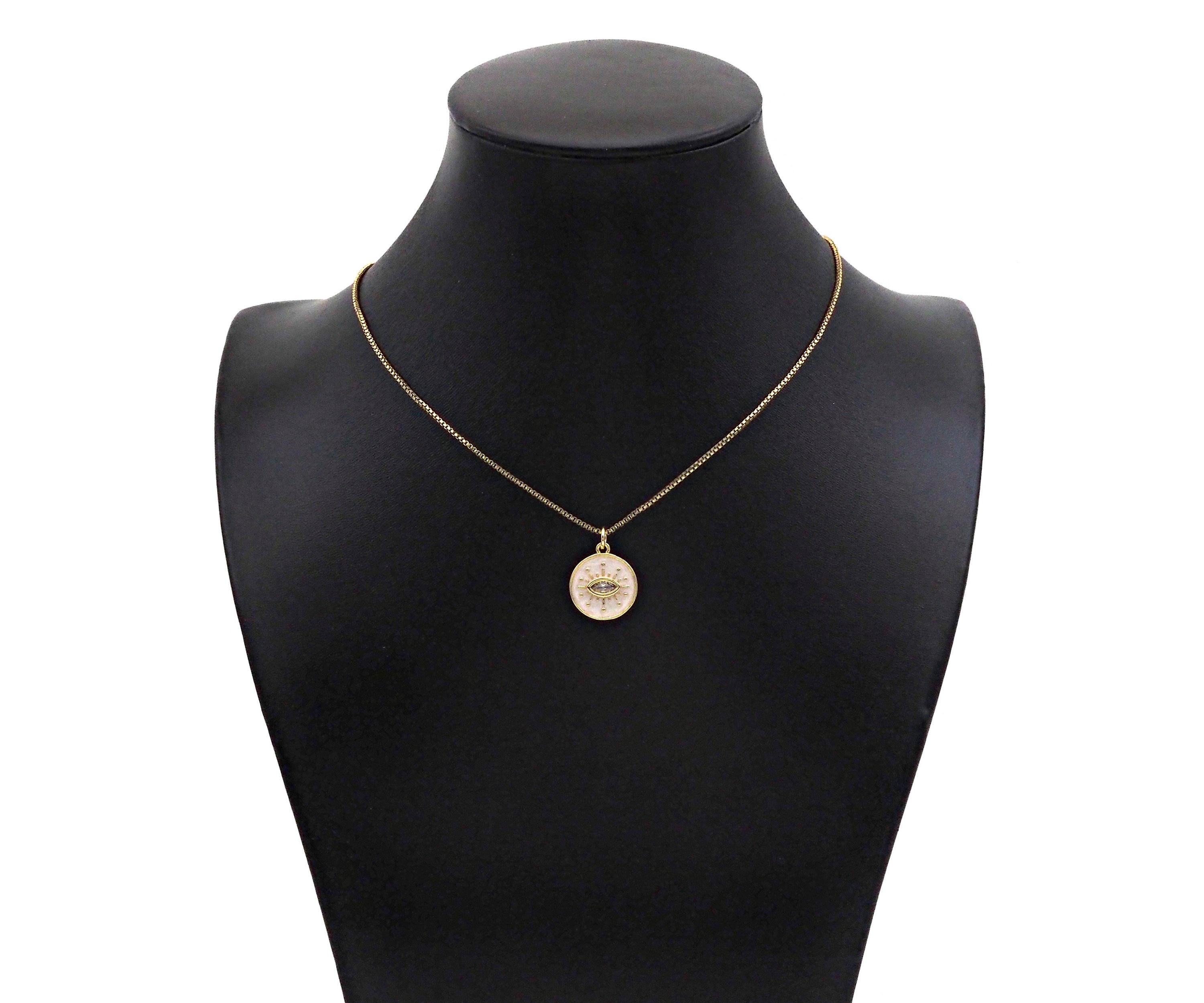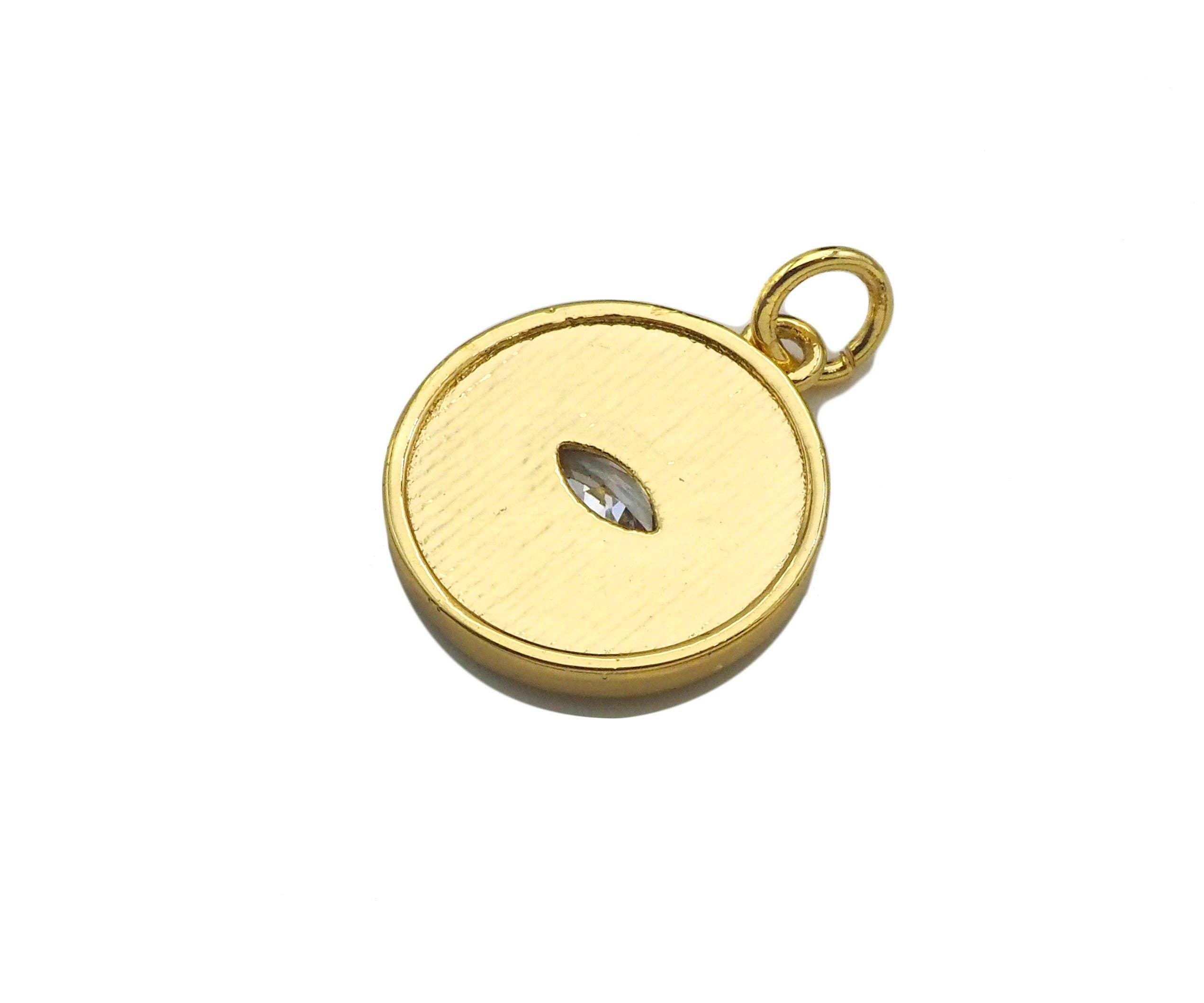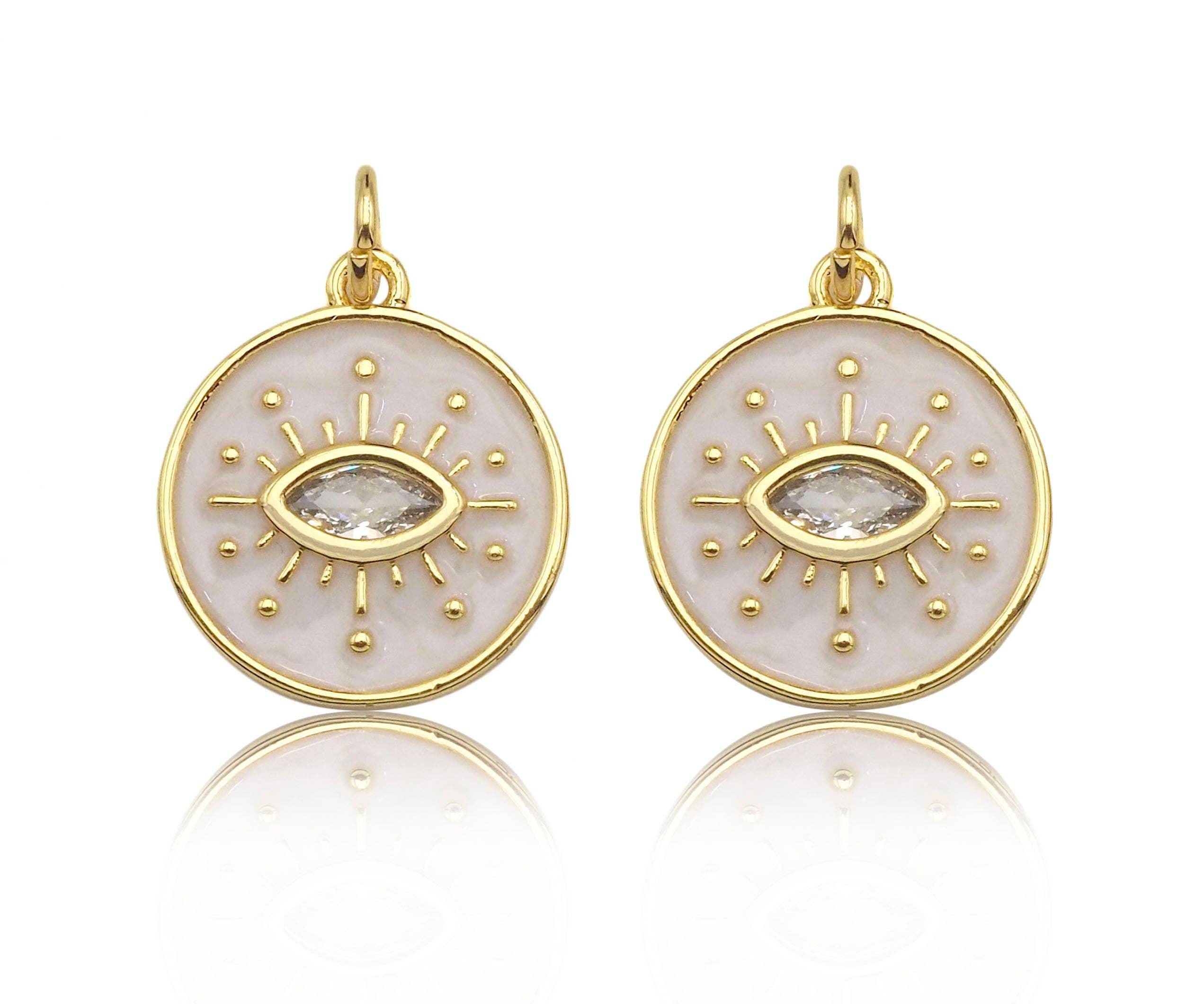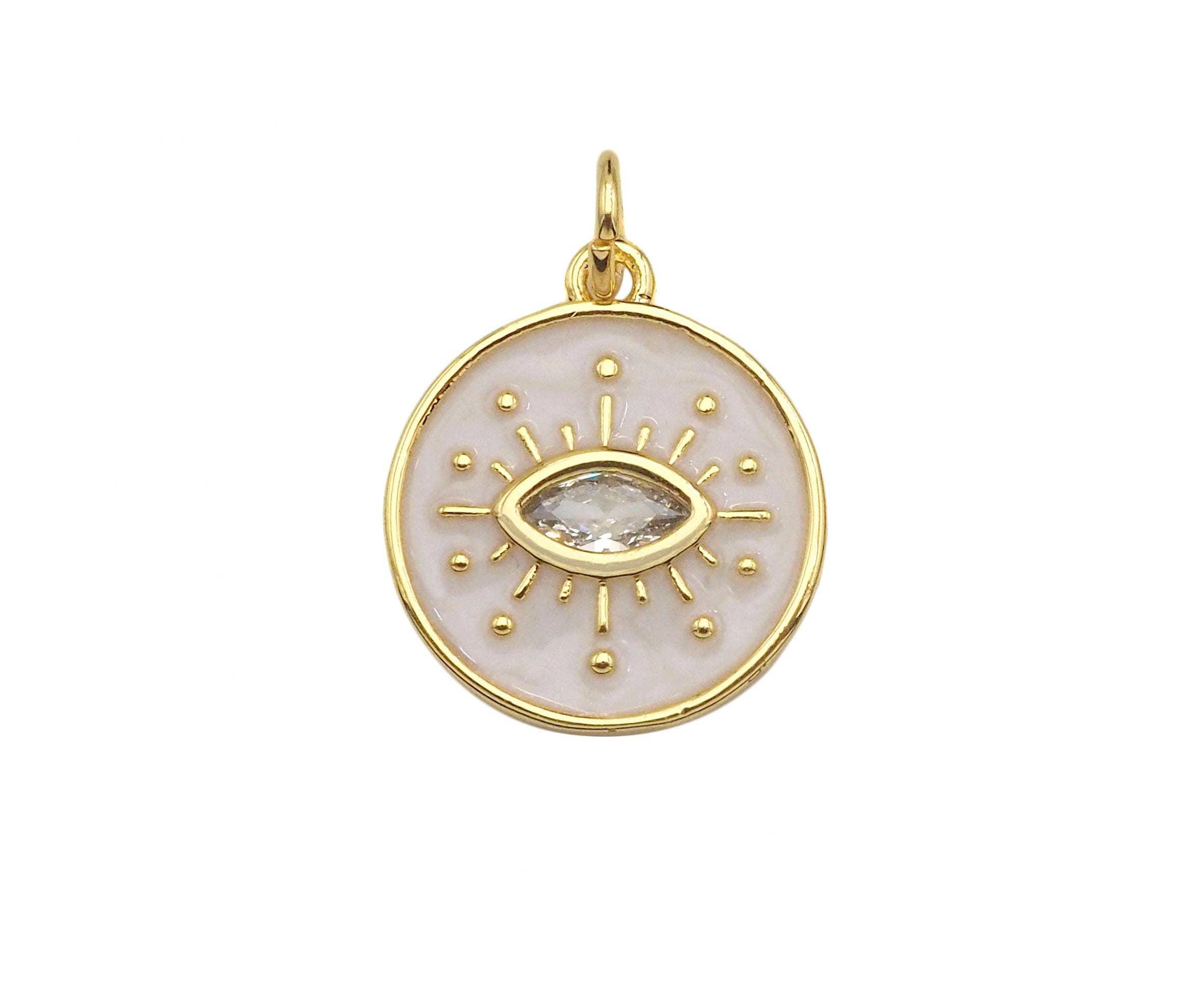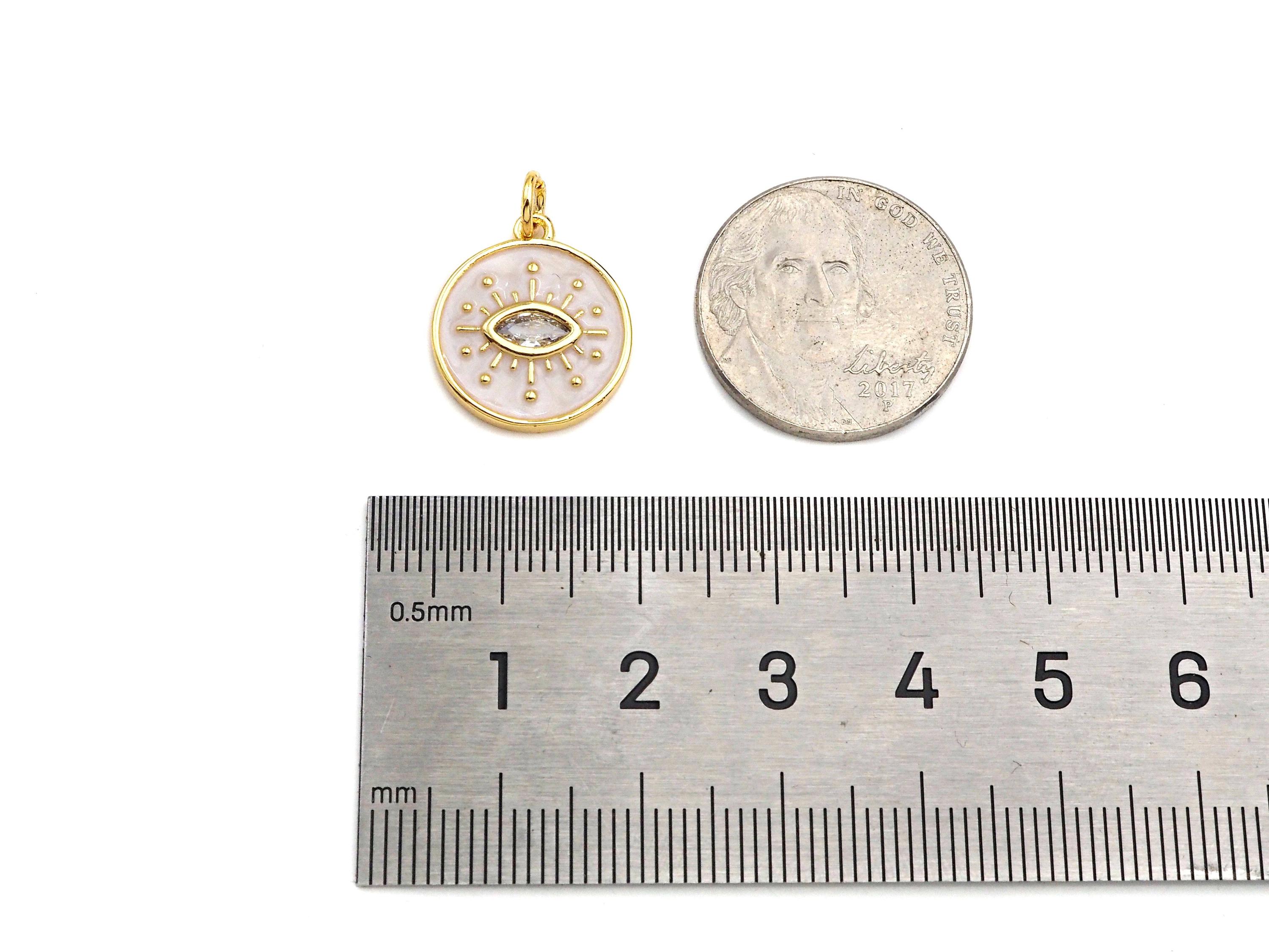 Enamel White Enamel Evil Eye On Round Coin Charm, Sku#Y434