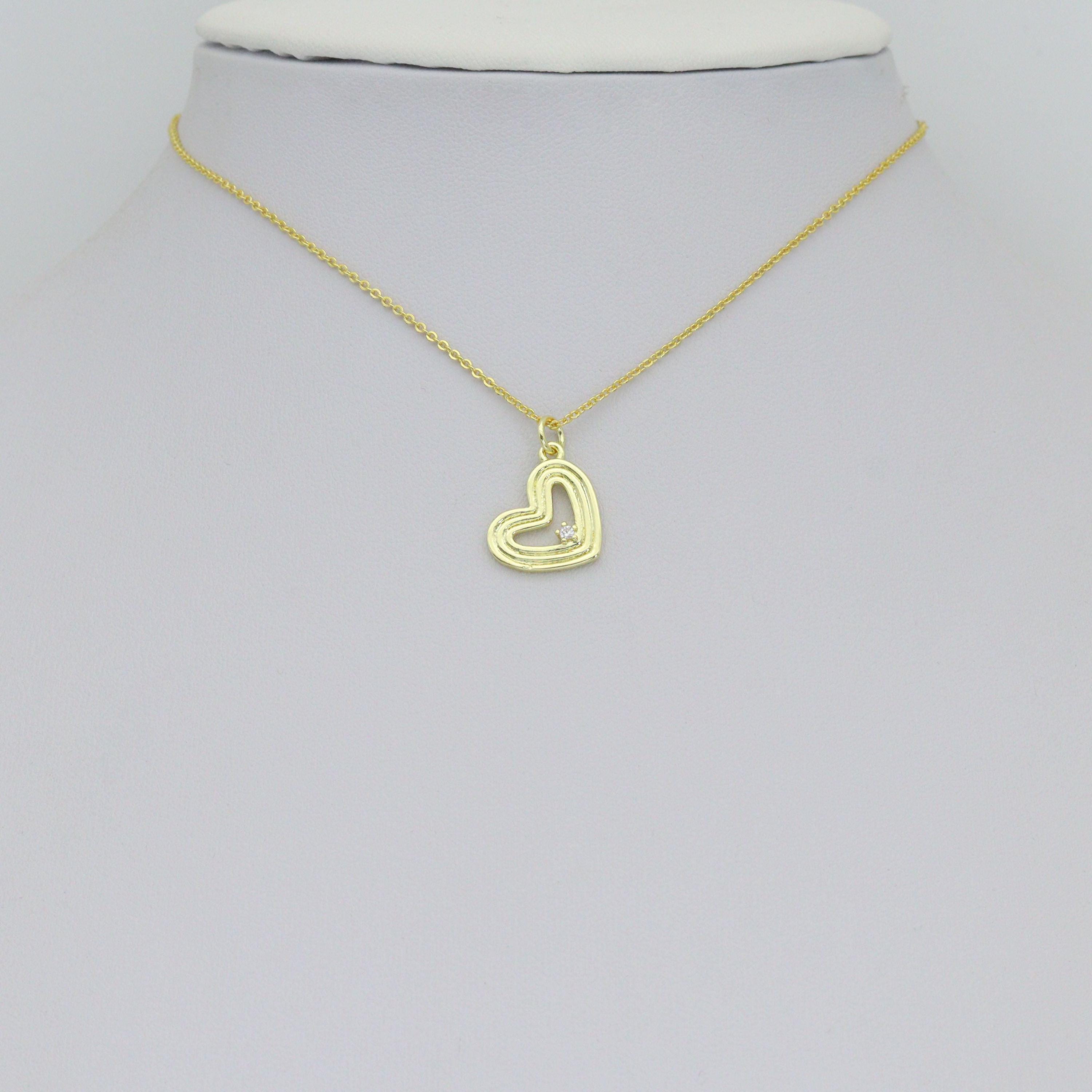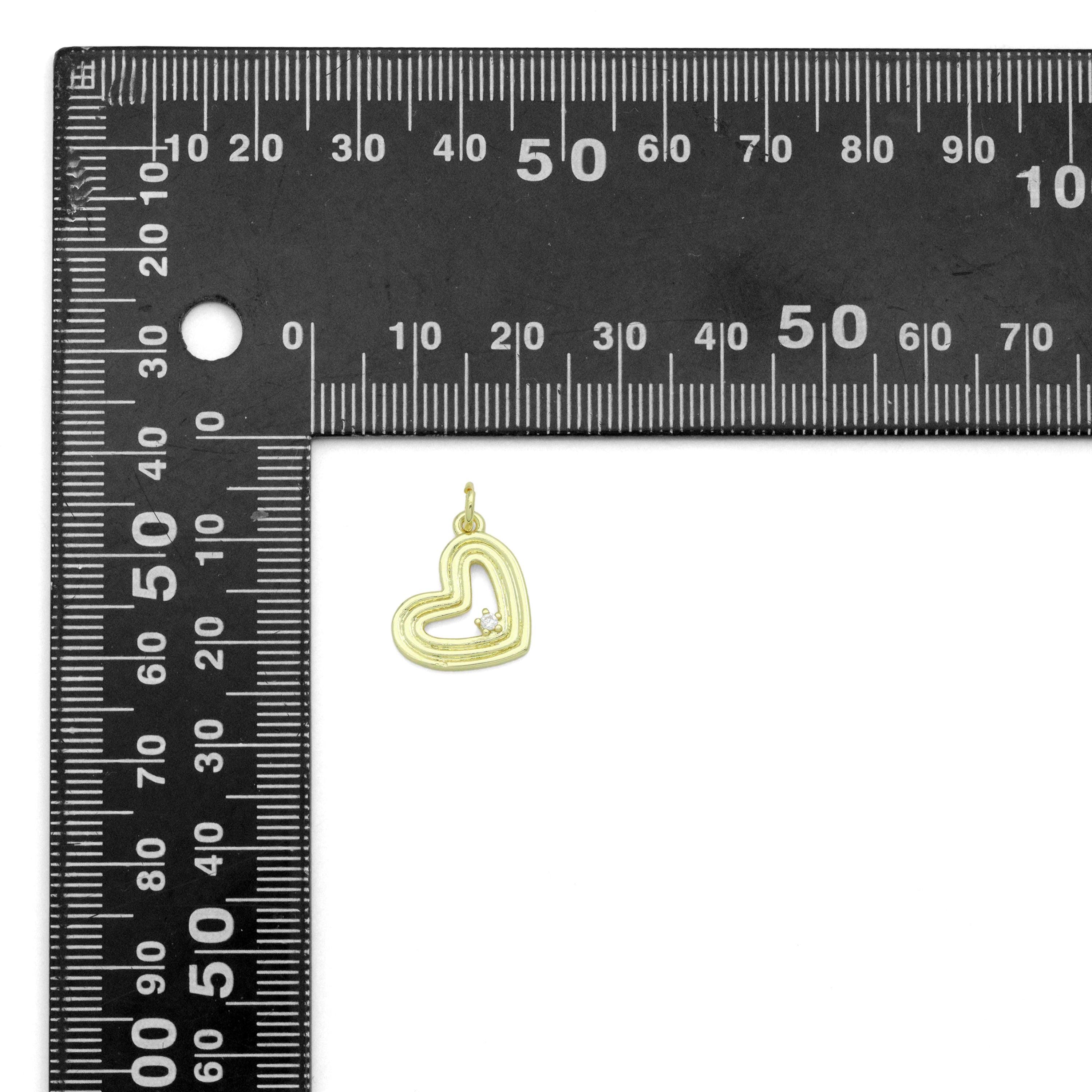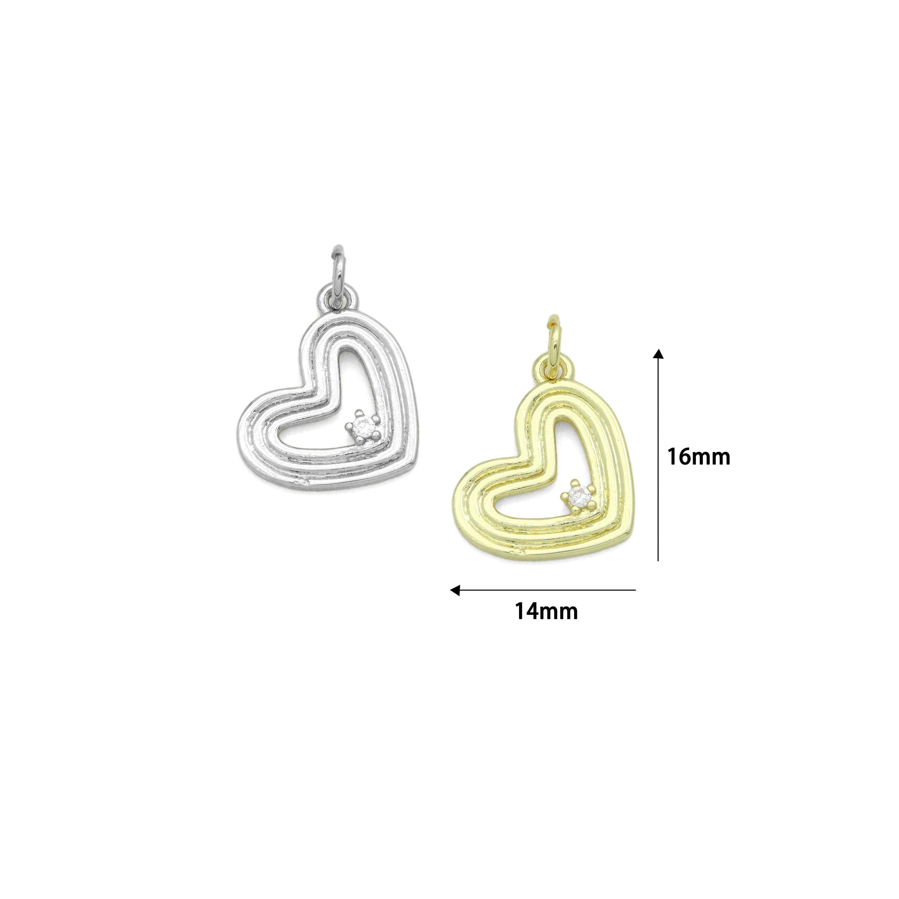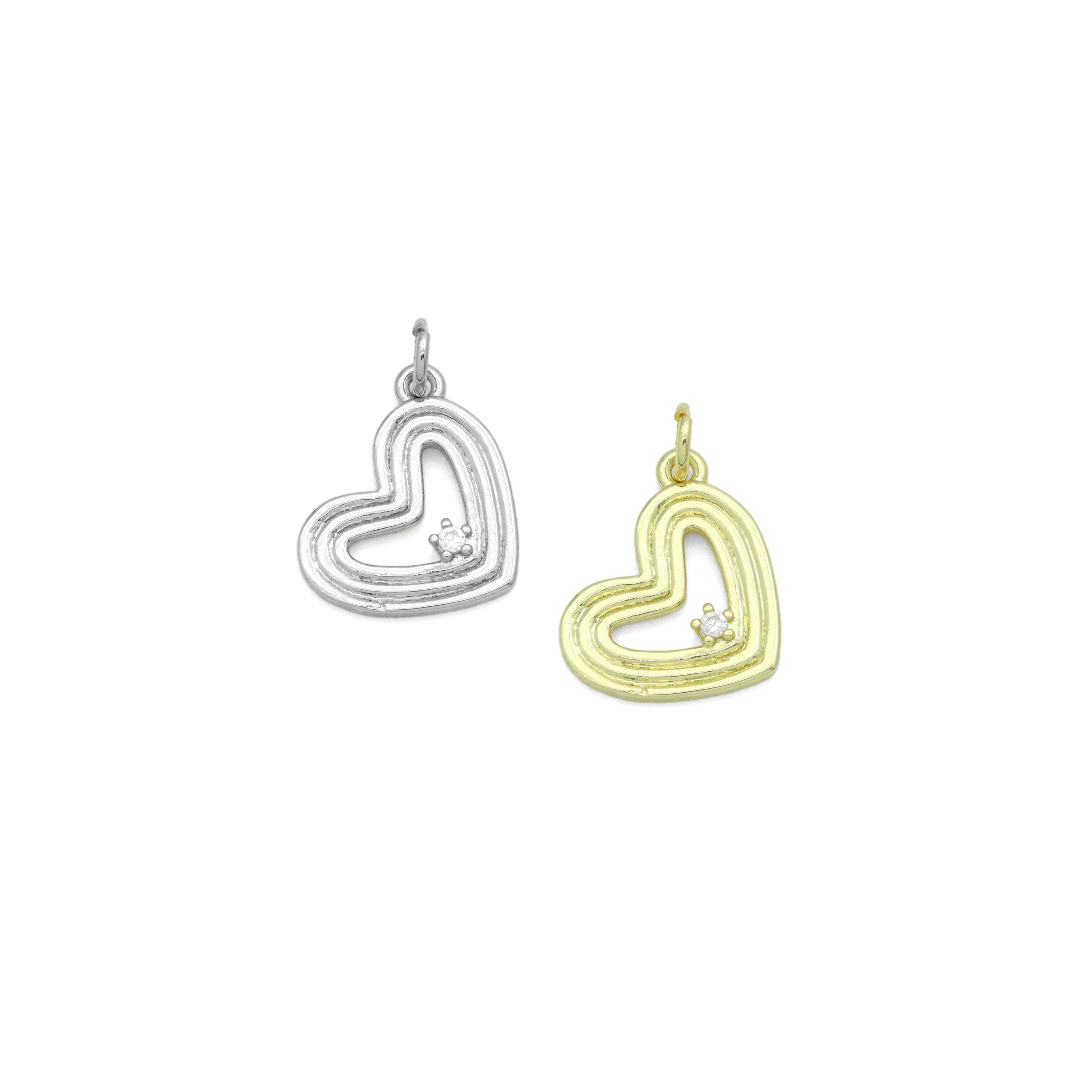 Clear CZ Gold Silver Fluted Heart Charm Pendant, Sku#LX943
