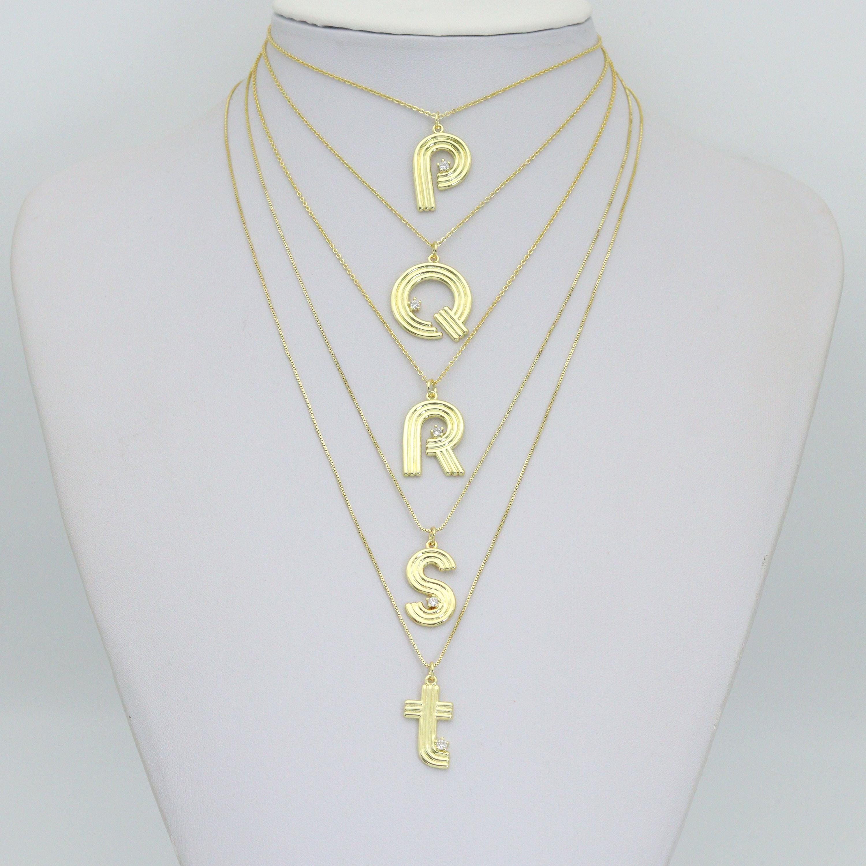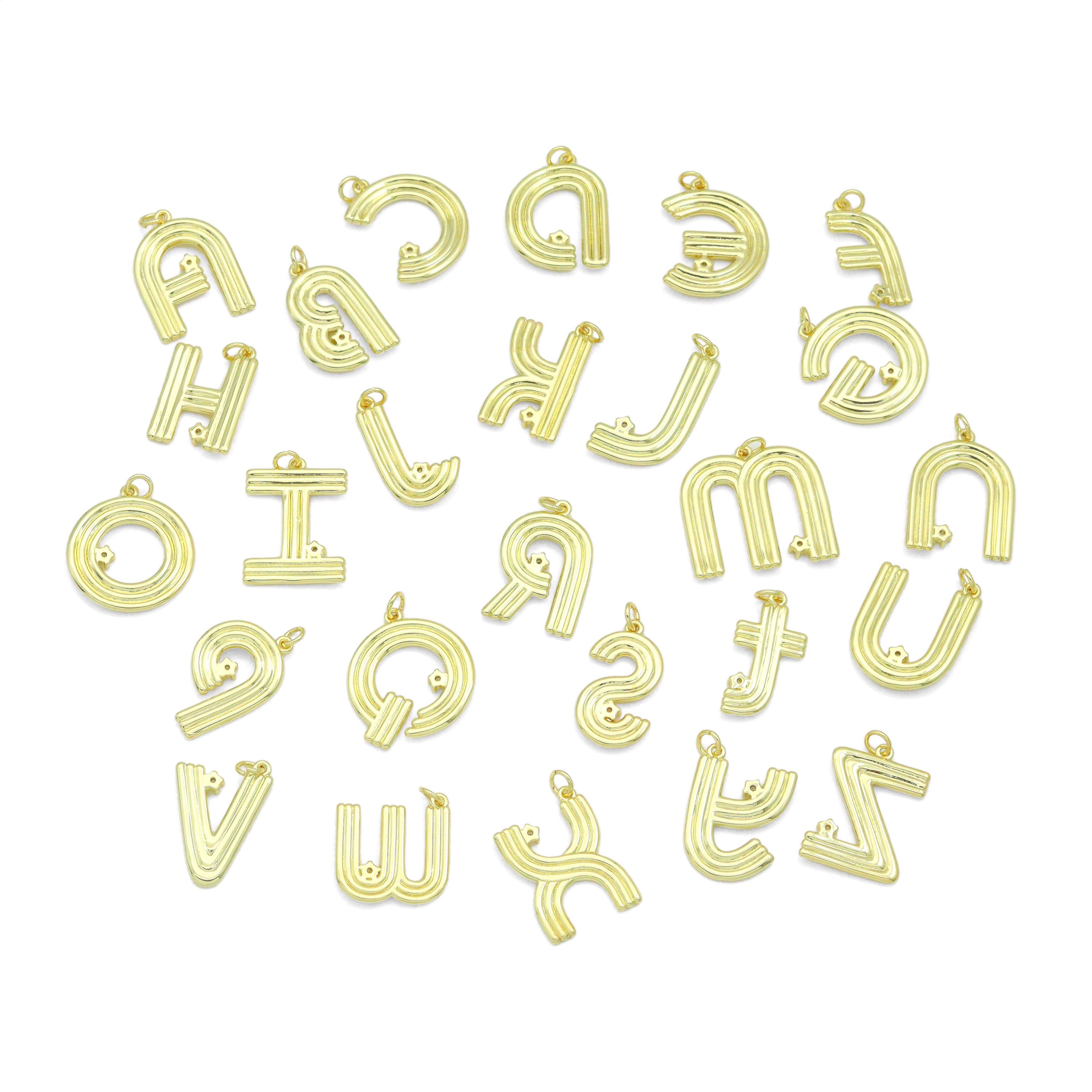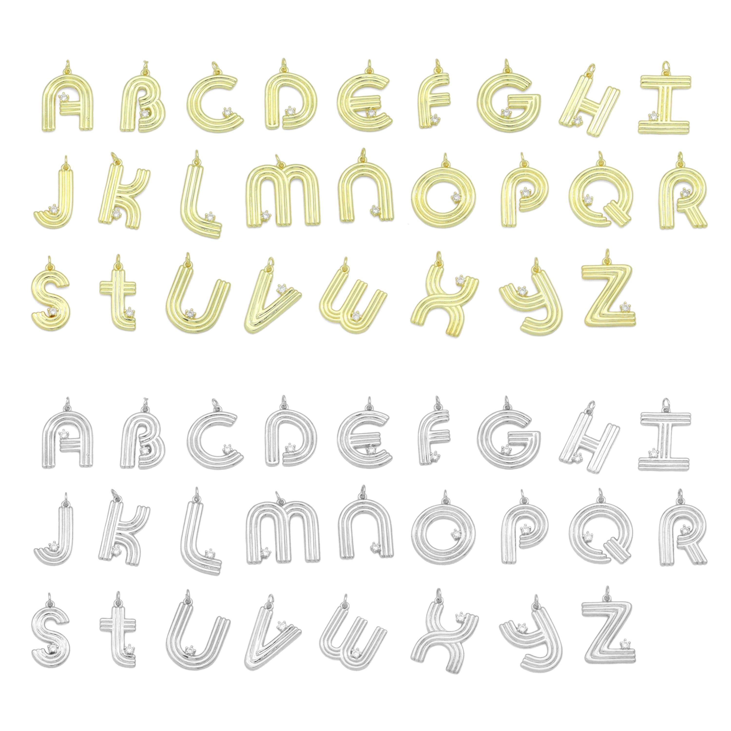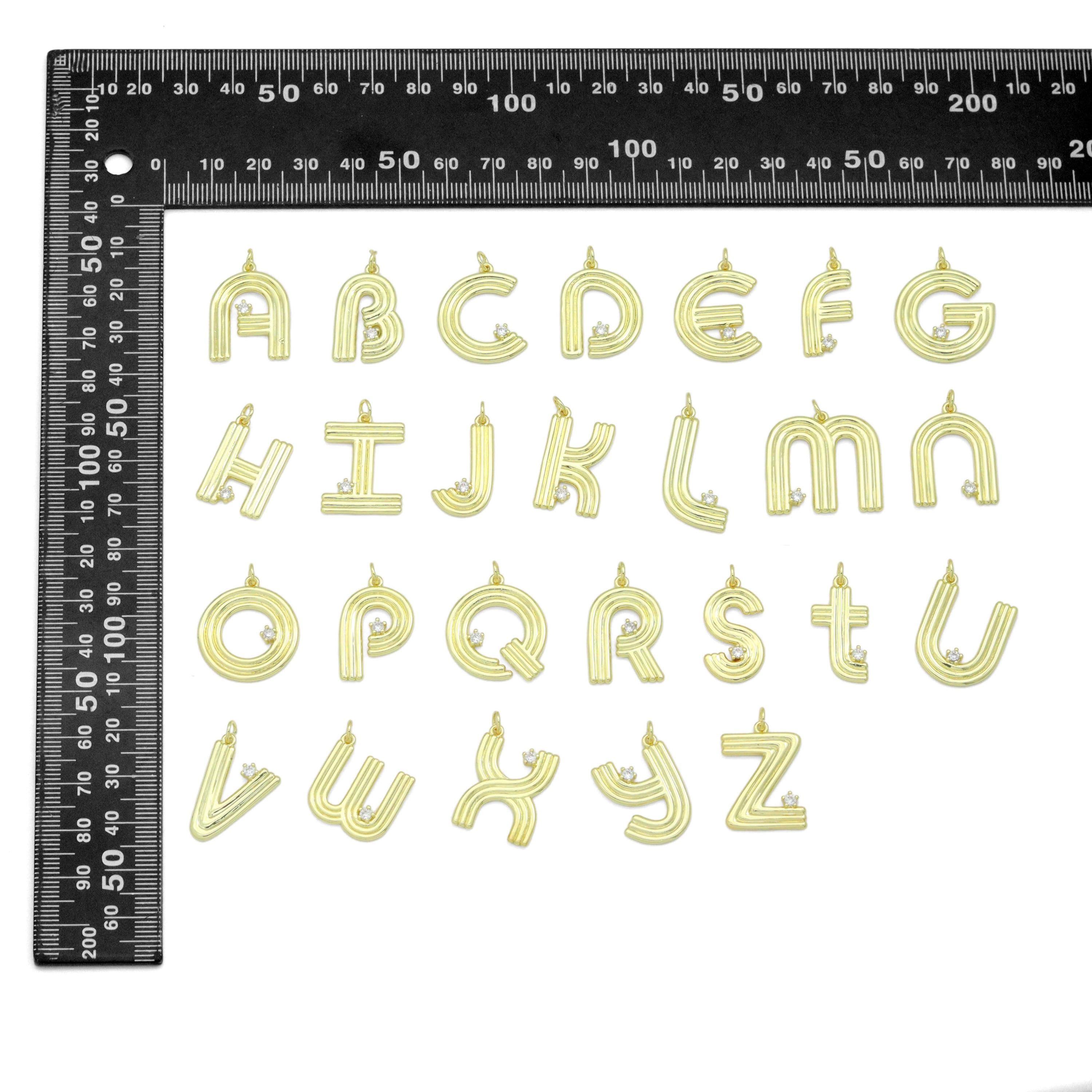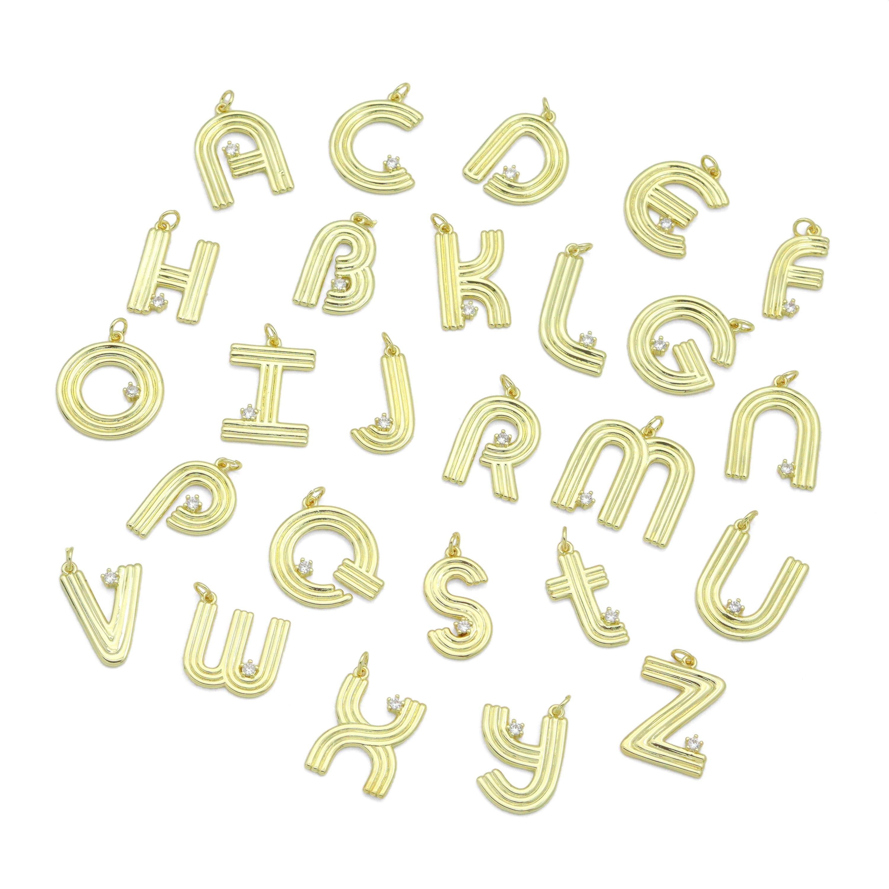 Gold Silver Fluted Alphabet Initial Charm Pendant, Sku#LX944