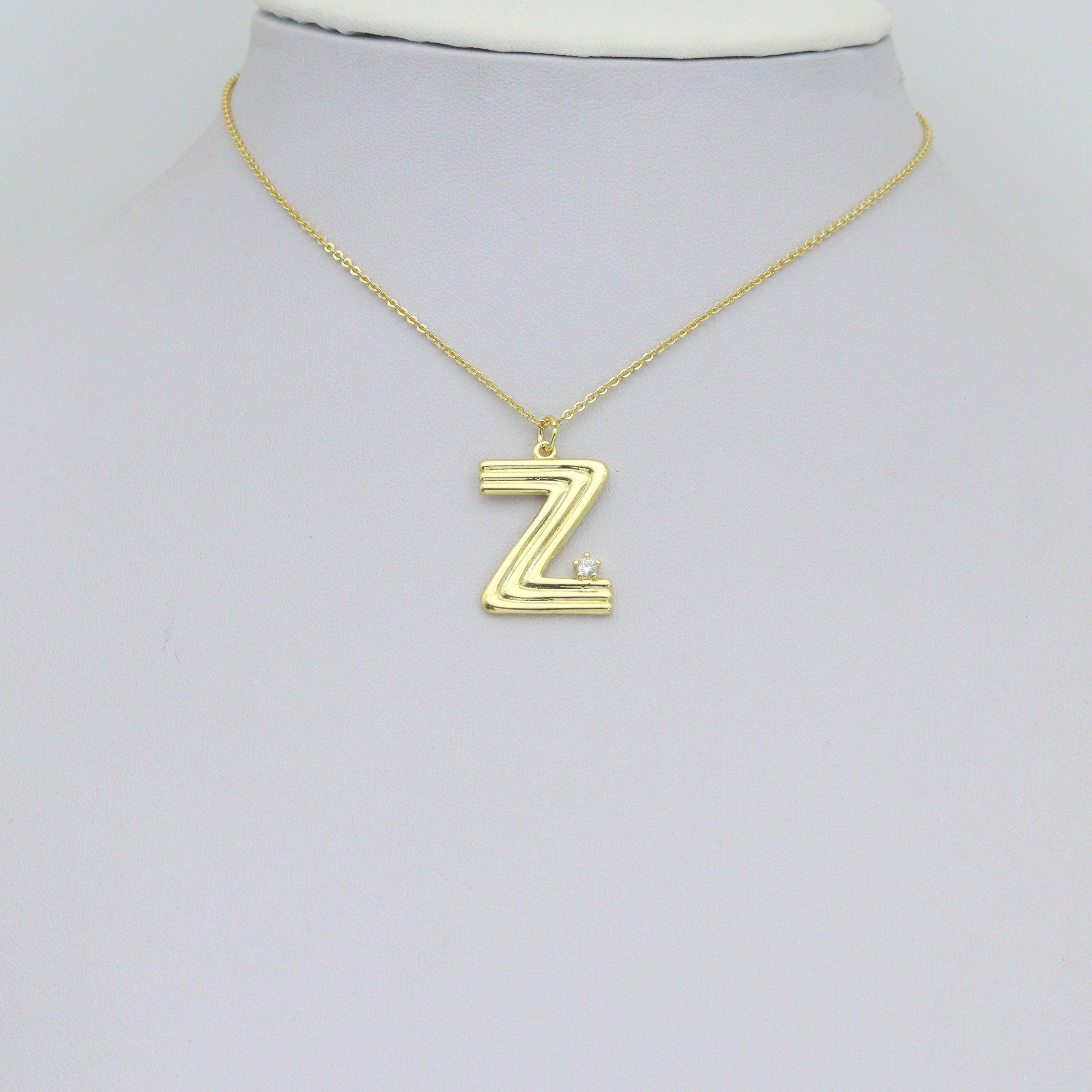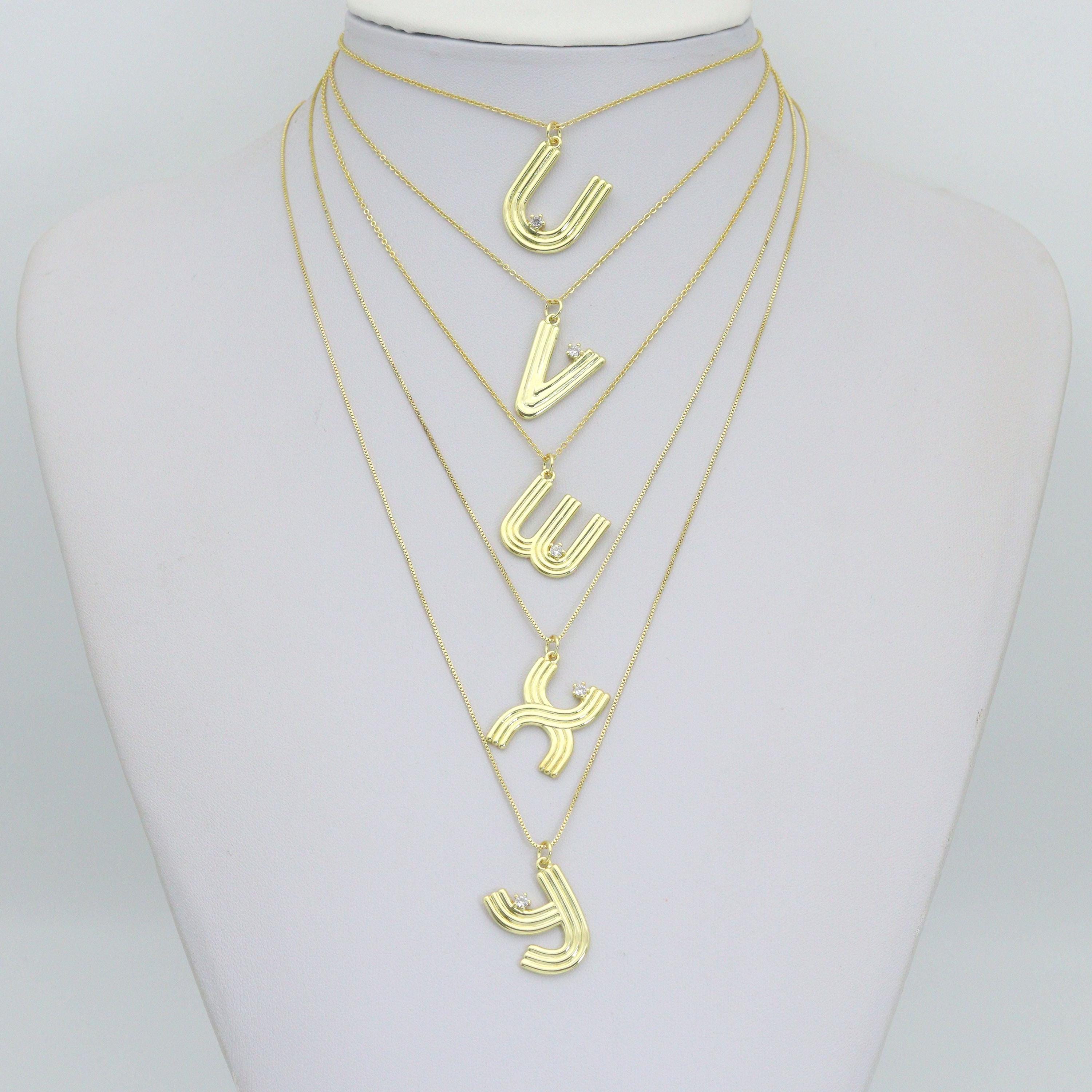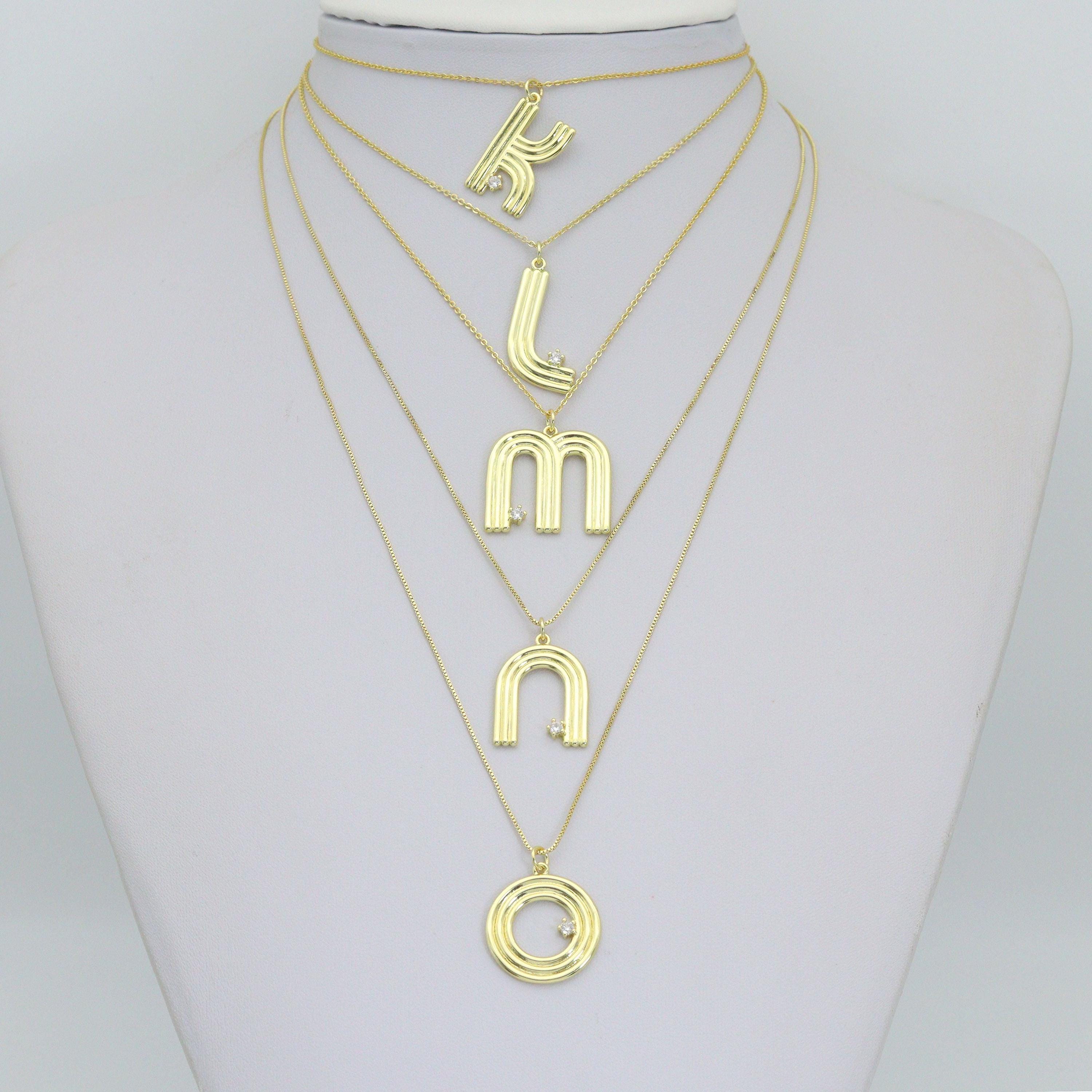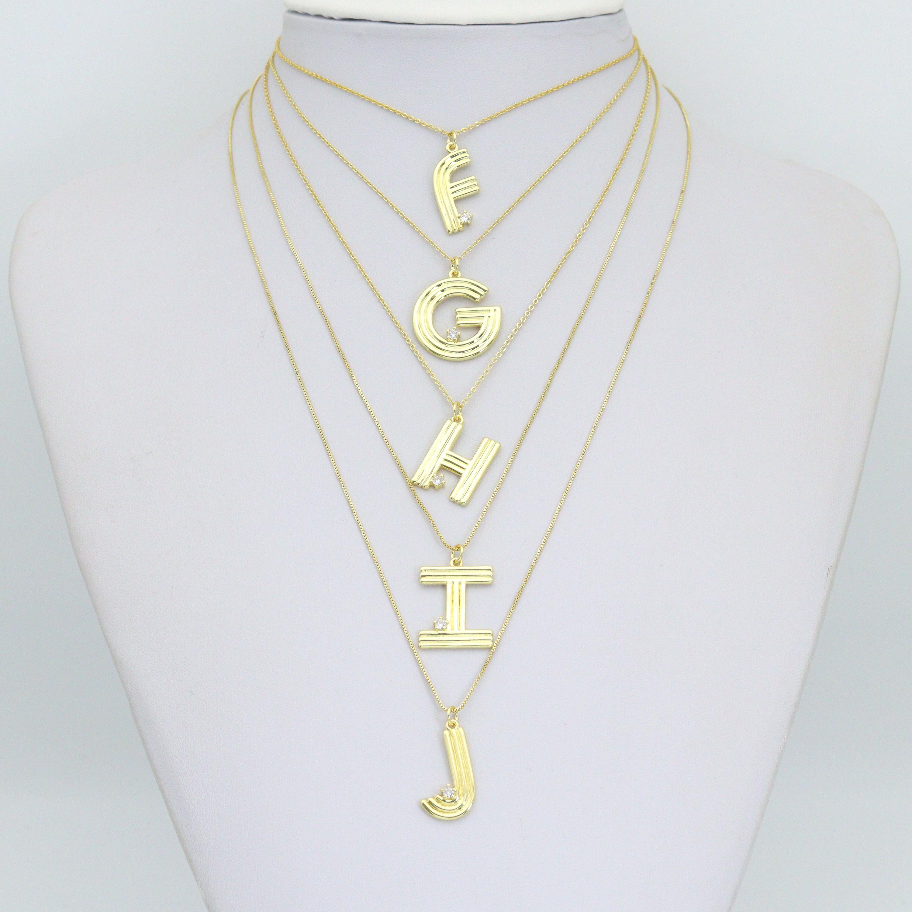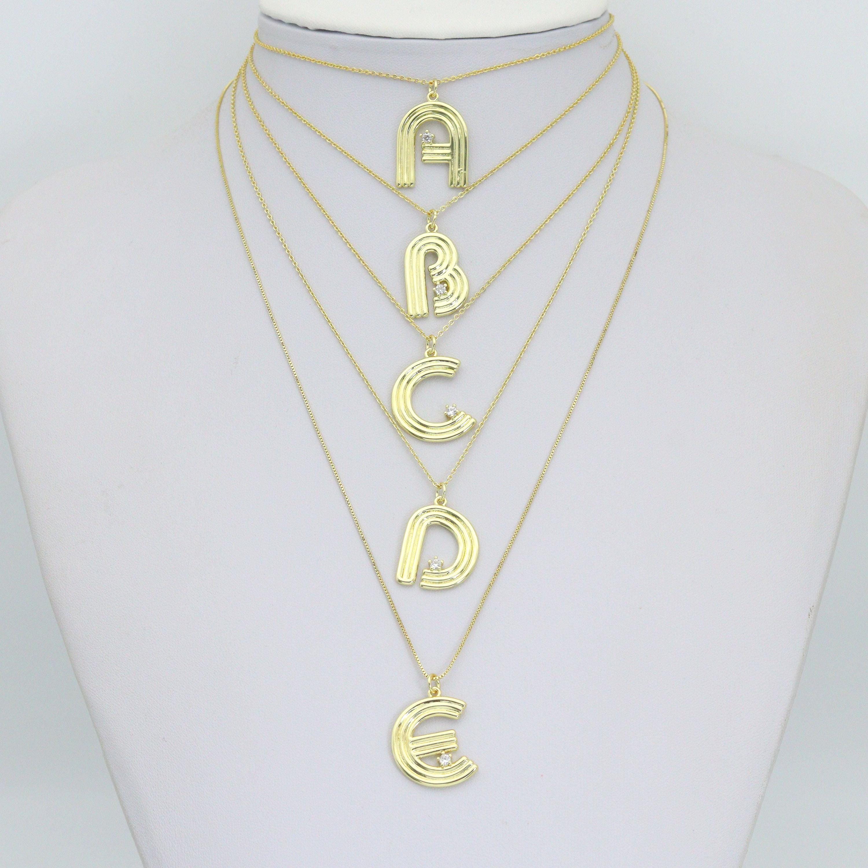 Gold Silver Fluted Alphabet Initial Charm Pendant, Sku#LX944
