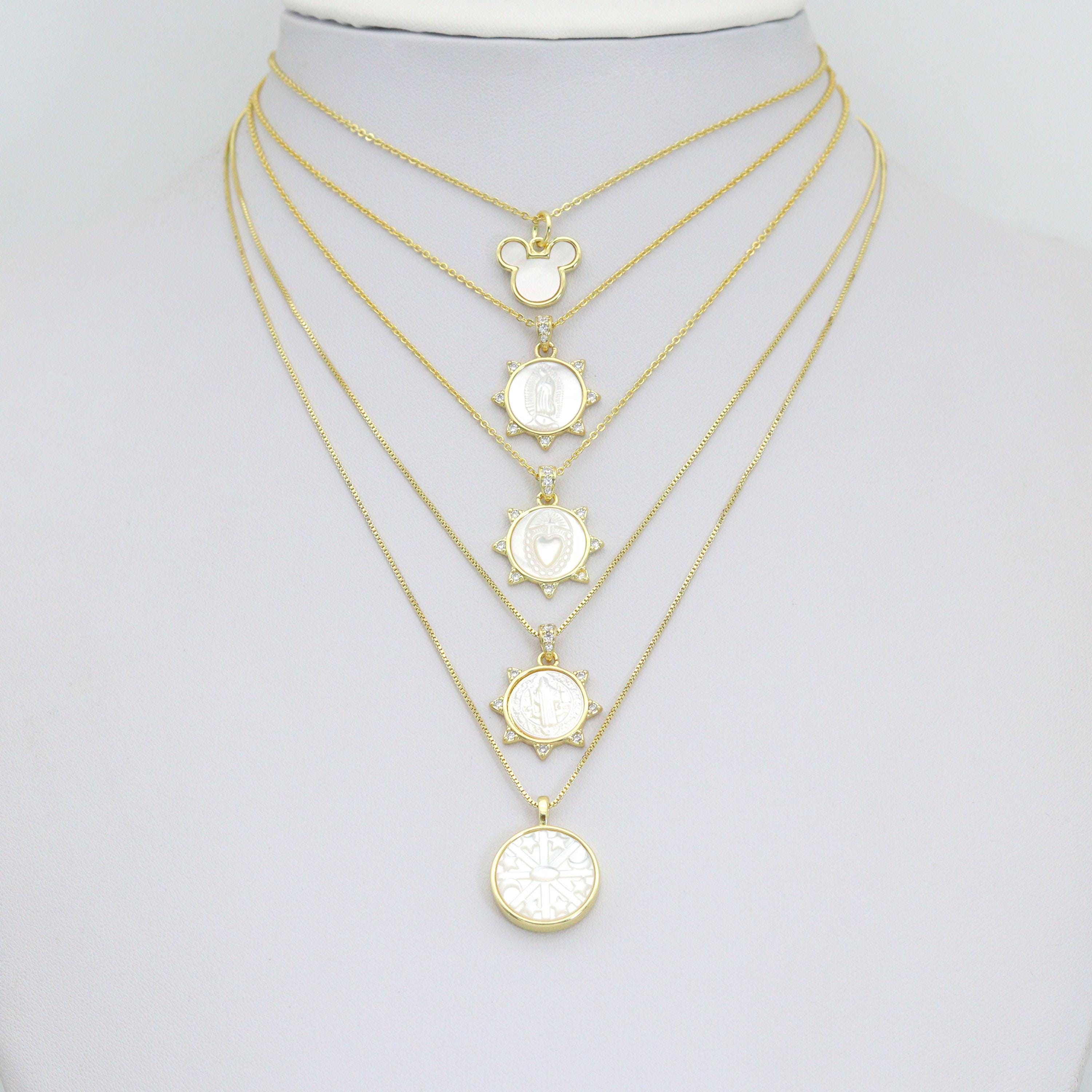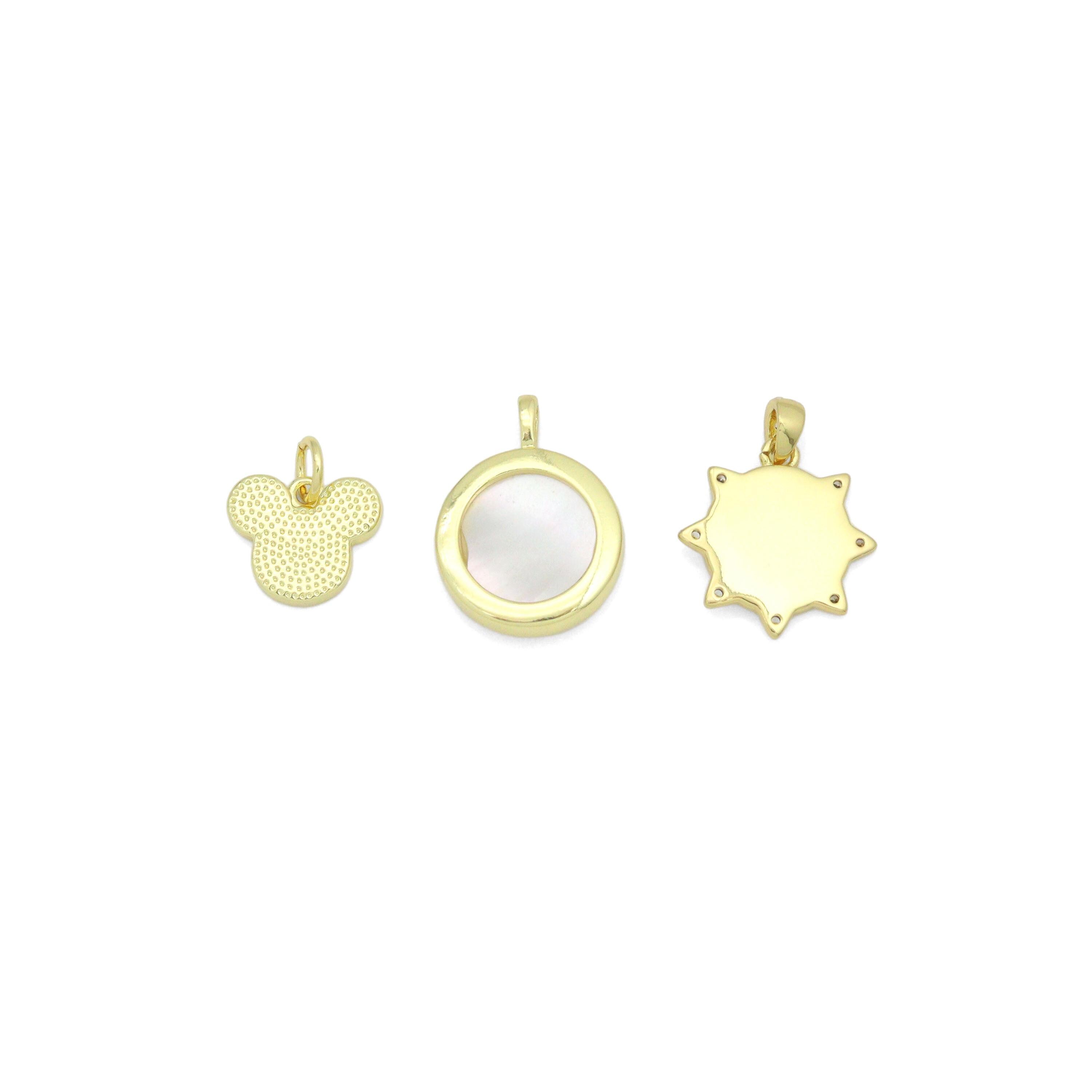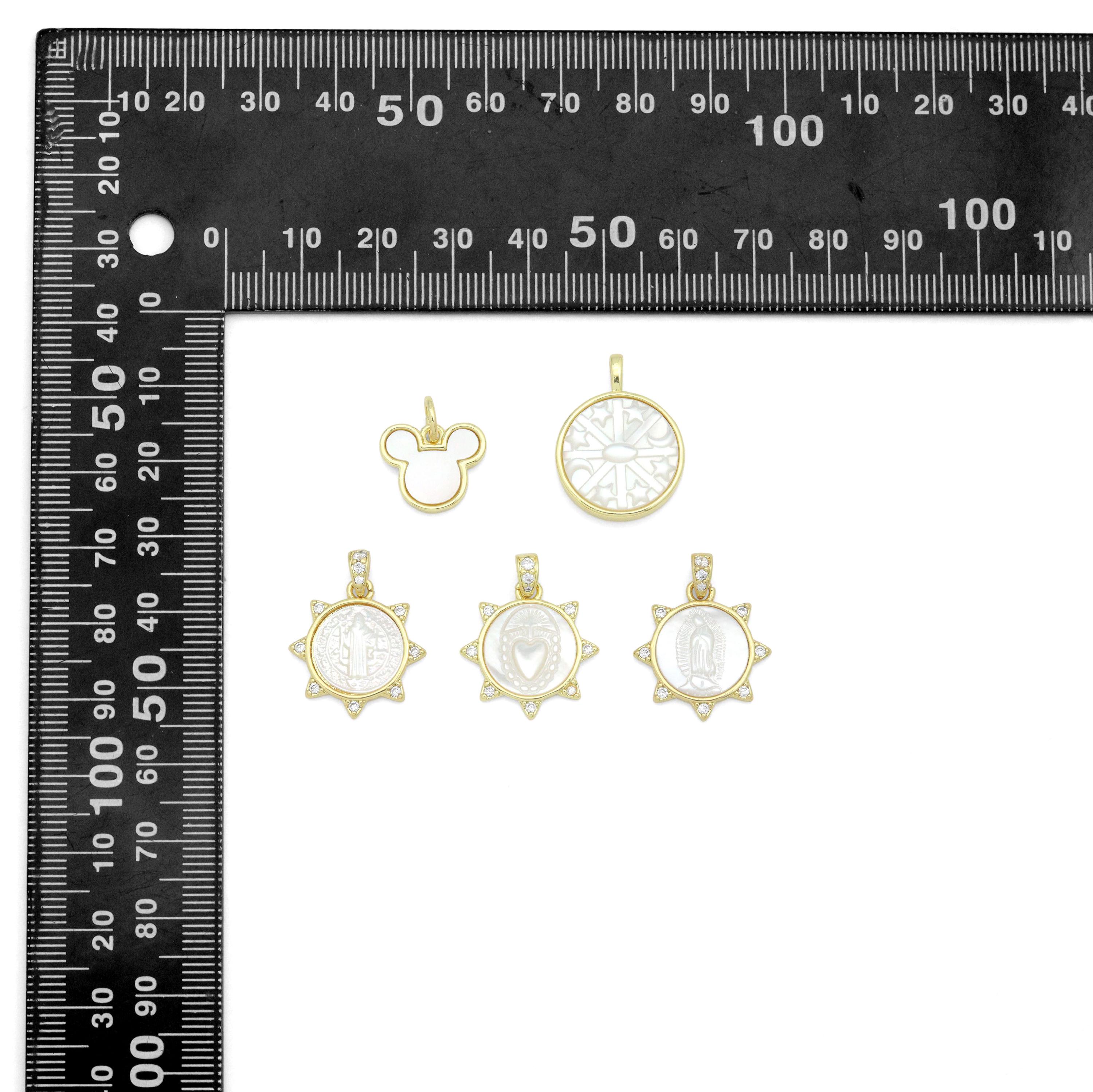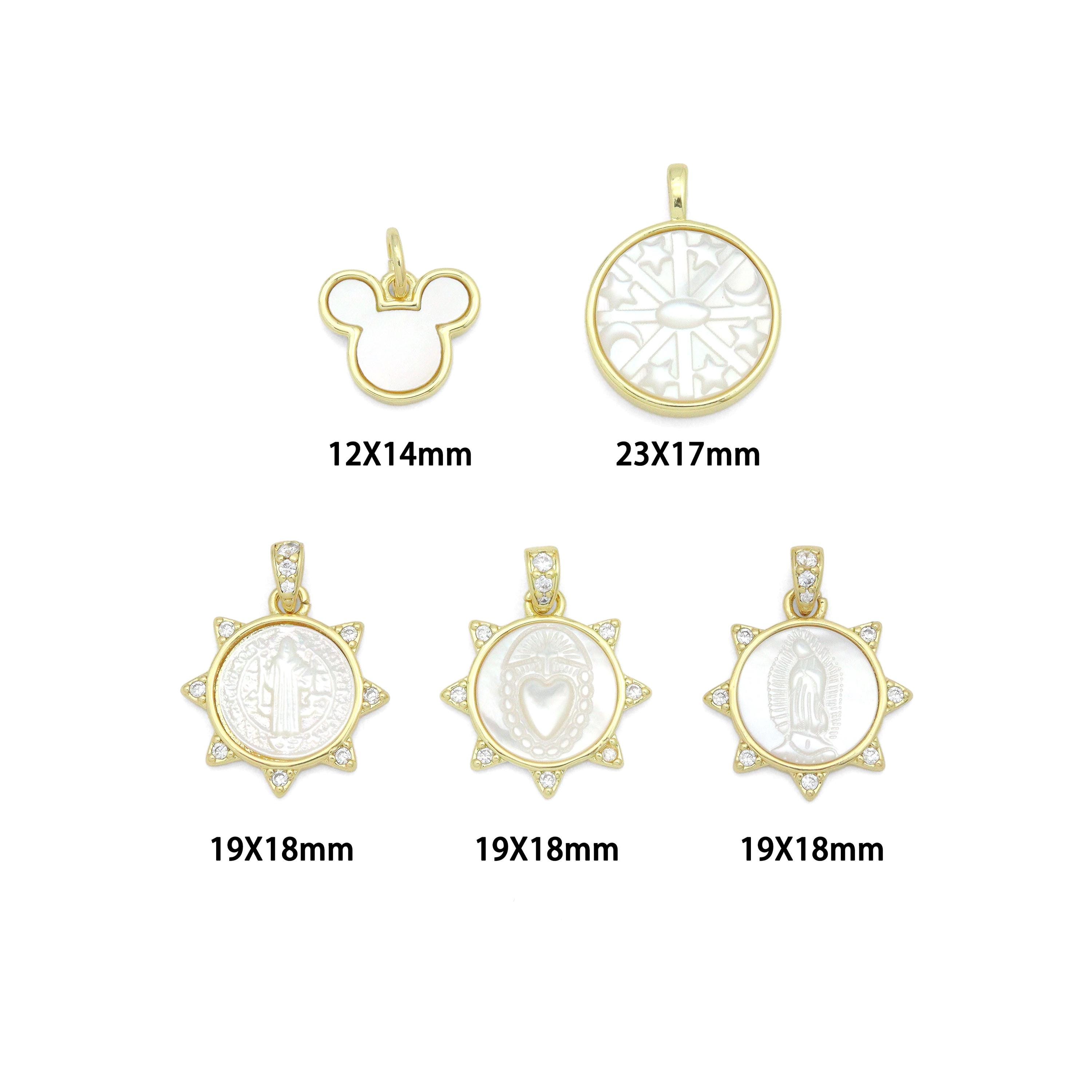Gold Mother of Pearl Pendant Collection – Mouse Snowflake & Religious Designs, Sku#LX957