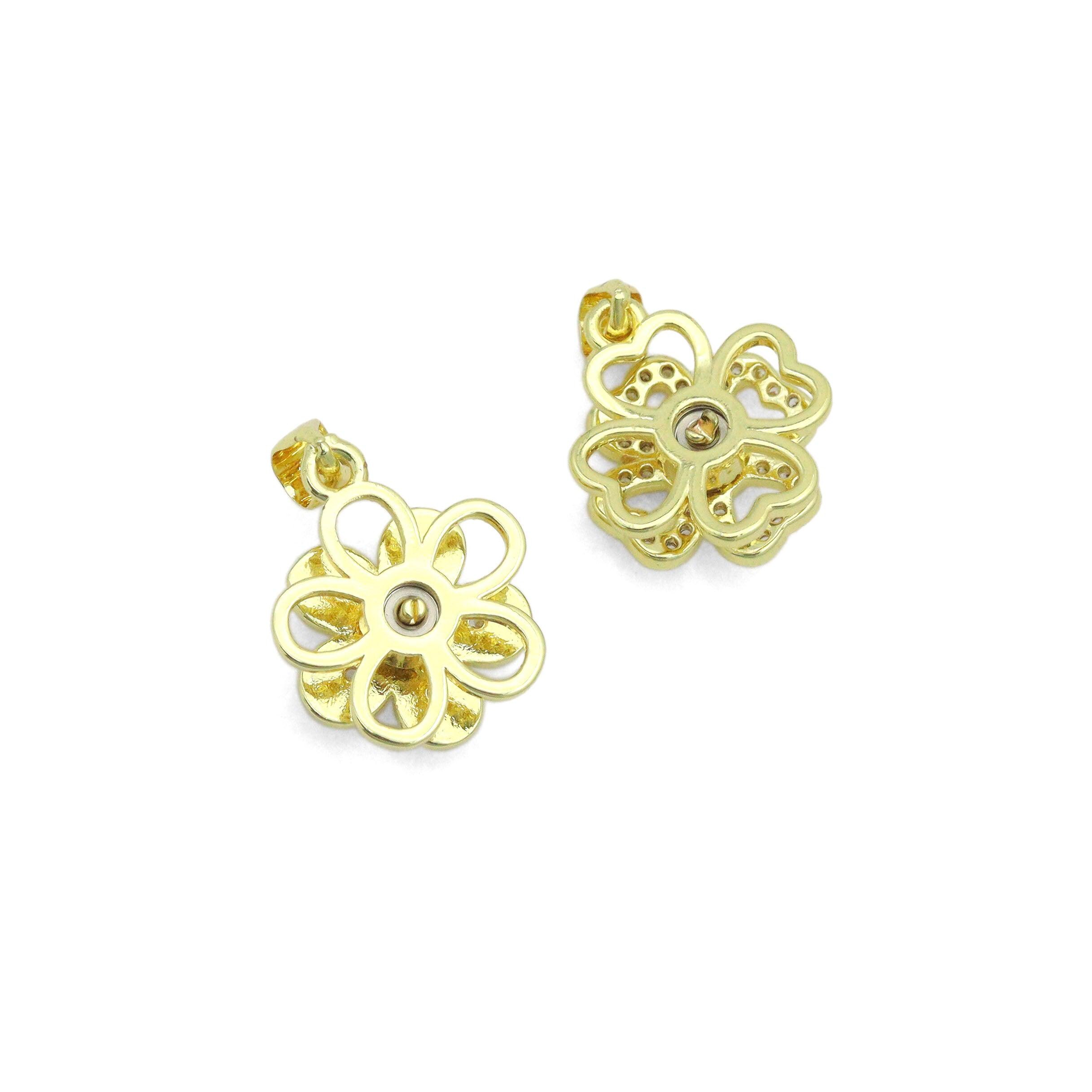 This elegant two-layer gold flower pendant features heart-shaped petals outlined with sparkling crystals for a romantic, radiant look. The top floral layer spins smoothly when turned by hand, making it a unique piece that’s both stylish and stress-relieving. Perfect for fidgeting discreetly while adding a playful, elegant charm to any necklace or bracelet.