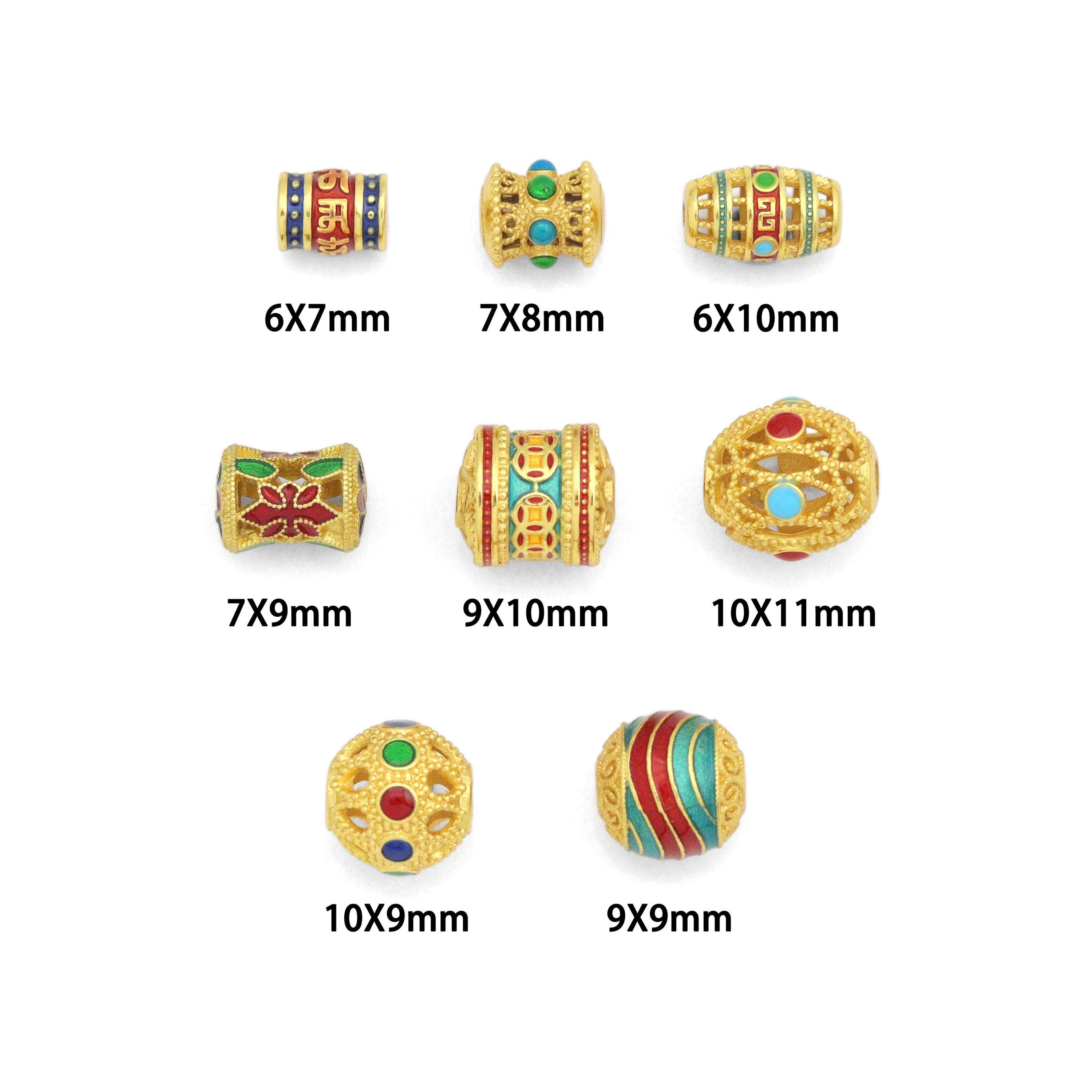 Tibetan-Style Enamel Bead Charm, Colorful Barrel & Round Beads for Jewelry Making, Sku#Y1065