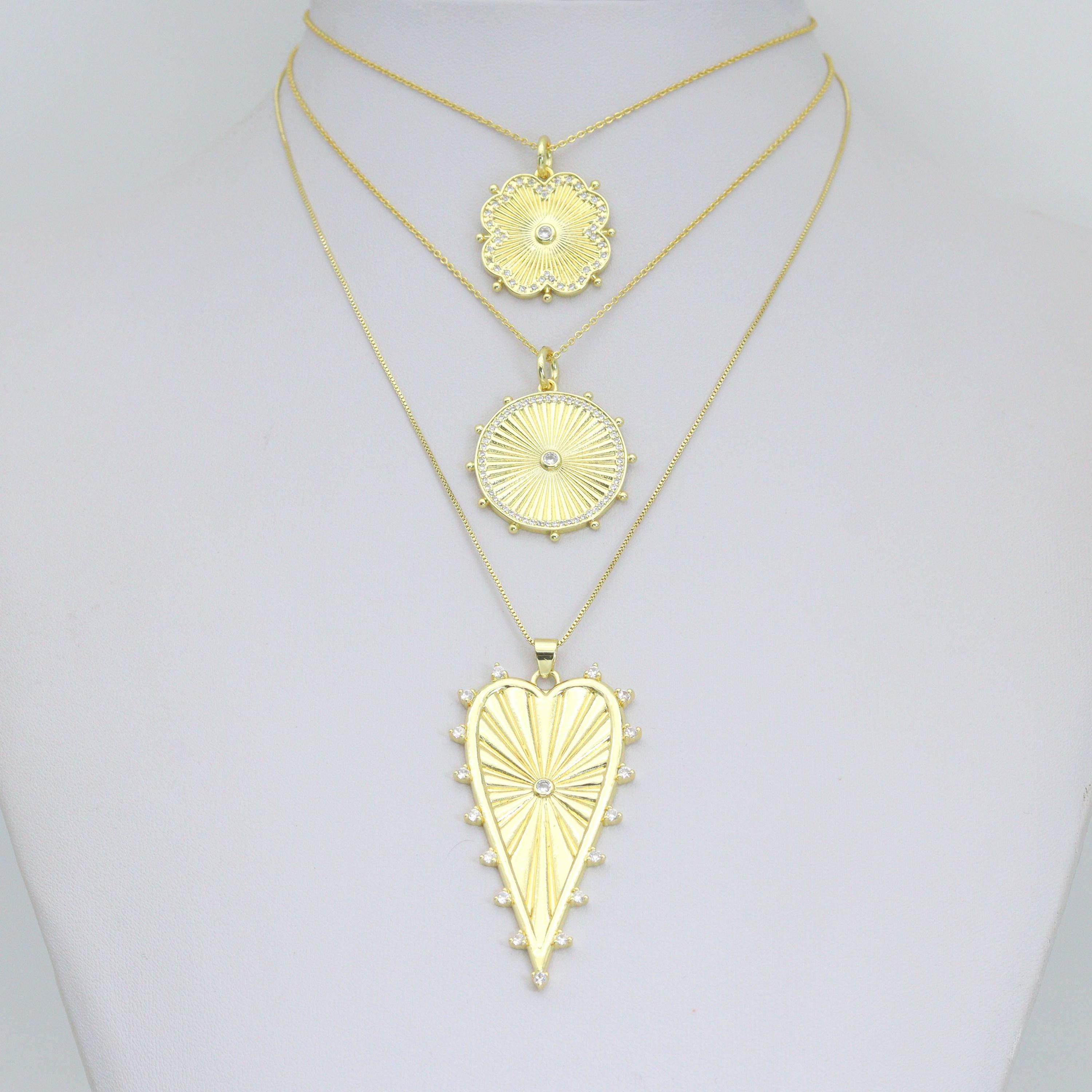 Petal Sunburst, Radiant Cirle, Heartburst Charm Pendant, Sku#LK1293