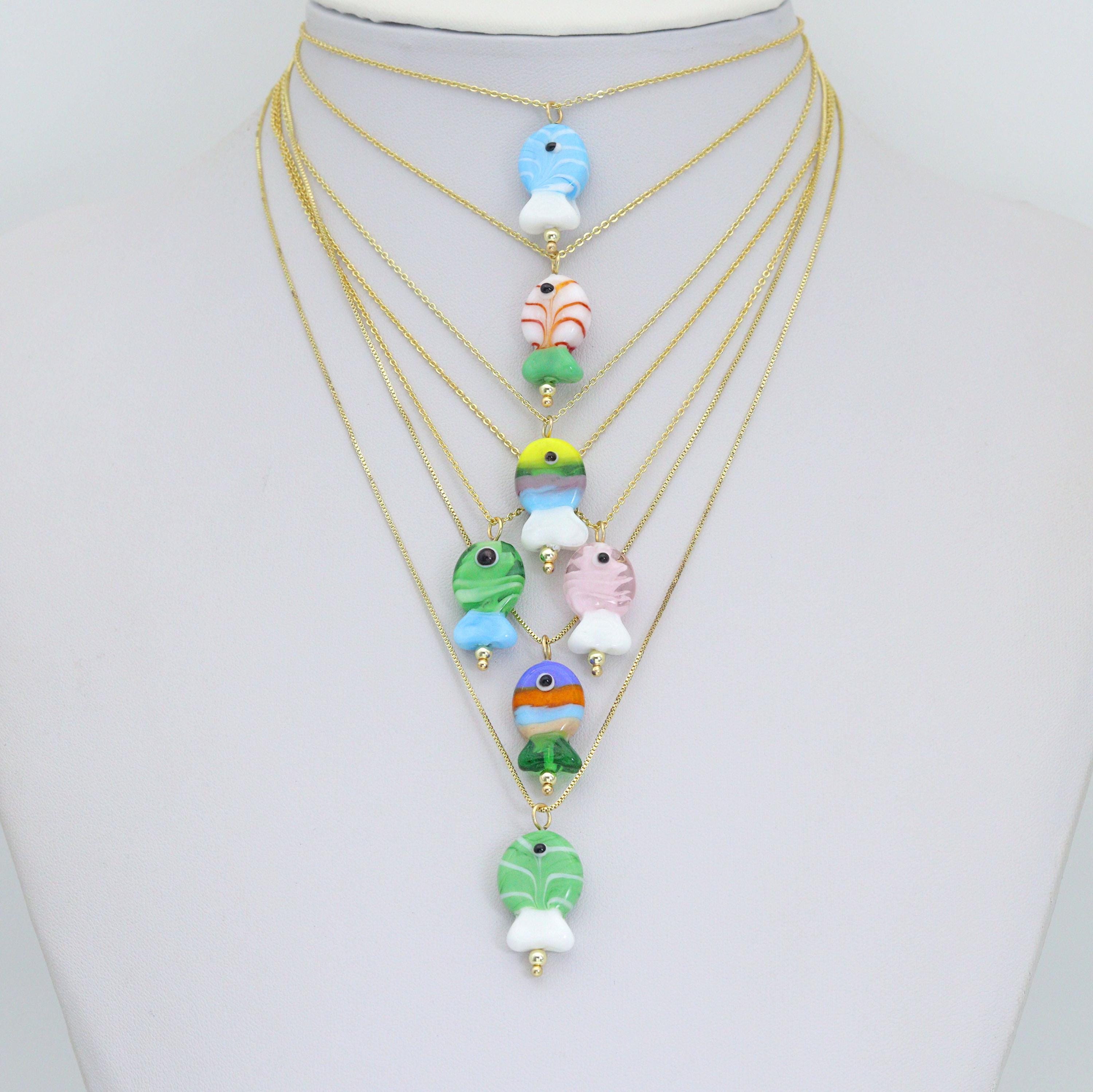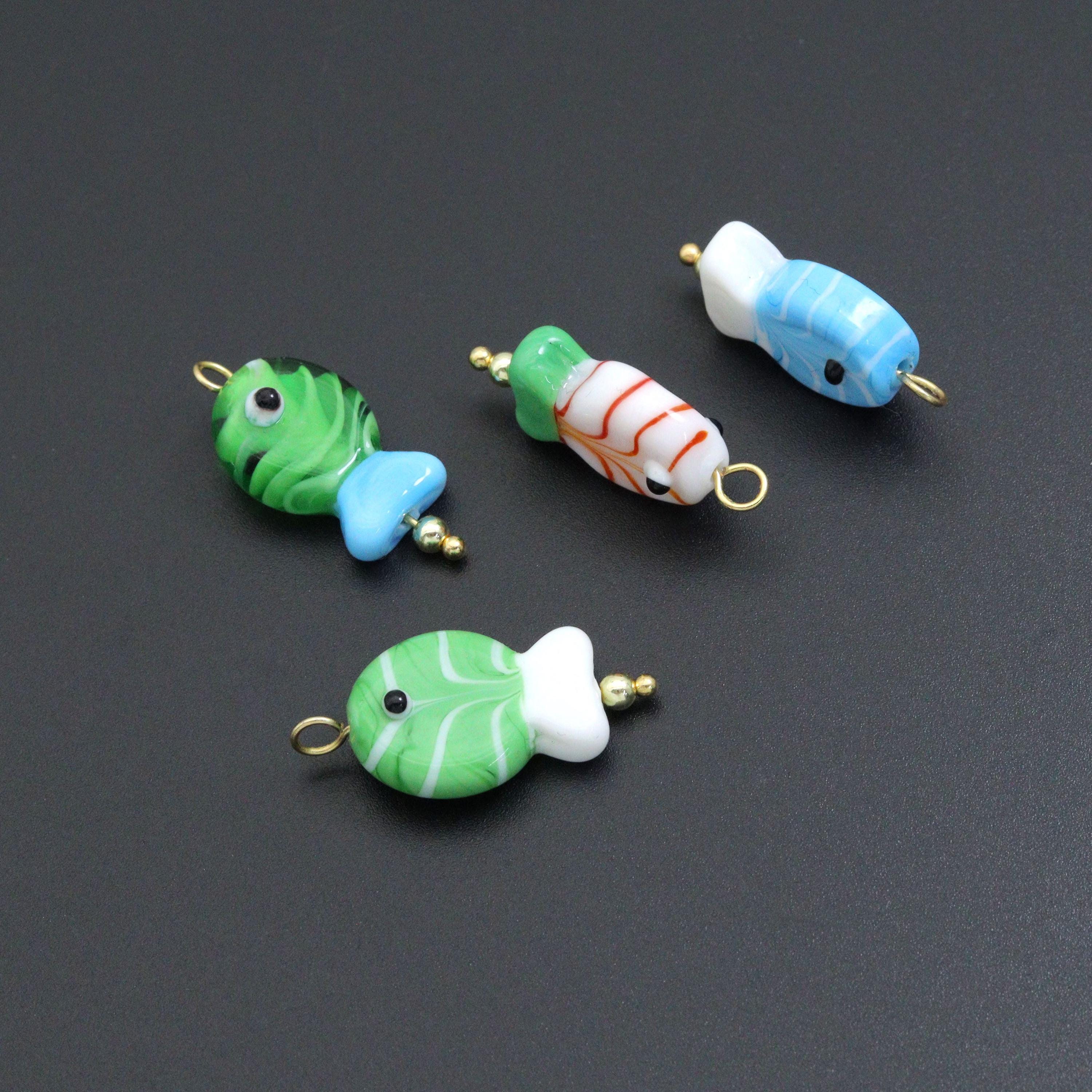 đ Striped Glass Fish Charm Collection â Colorful Pendant Handmade with vibrant colors and swirled stripes, these glass fish pendants are fun, unique, and perfect for bracelets, necklaces, keychains, and DIY jewelry projects. Each charm features an eye detail for a playful touch, making them both whimsical and stylish.