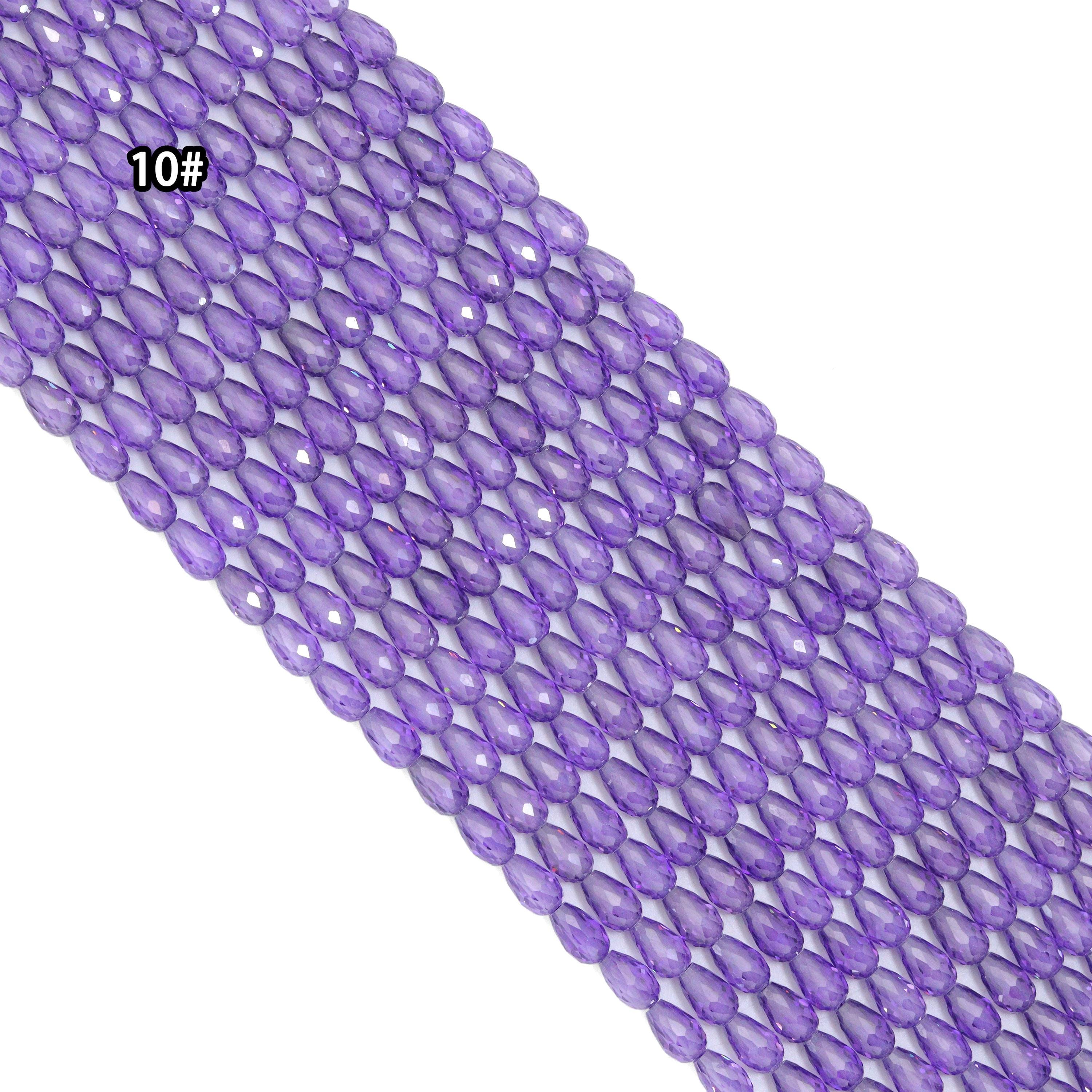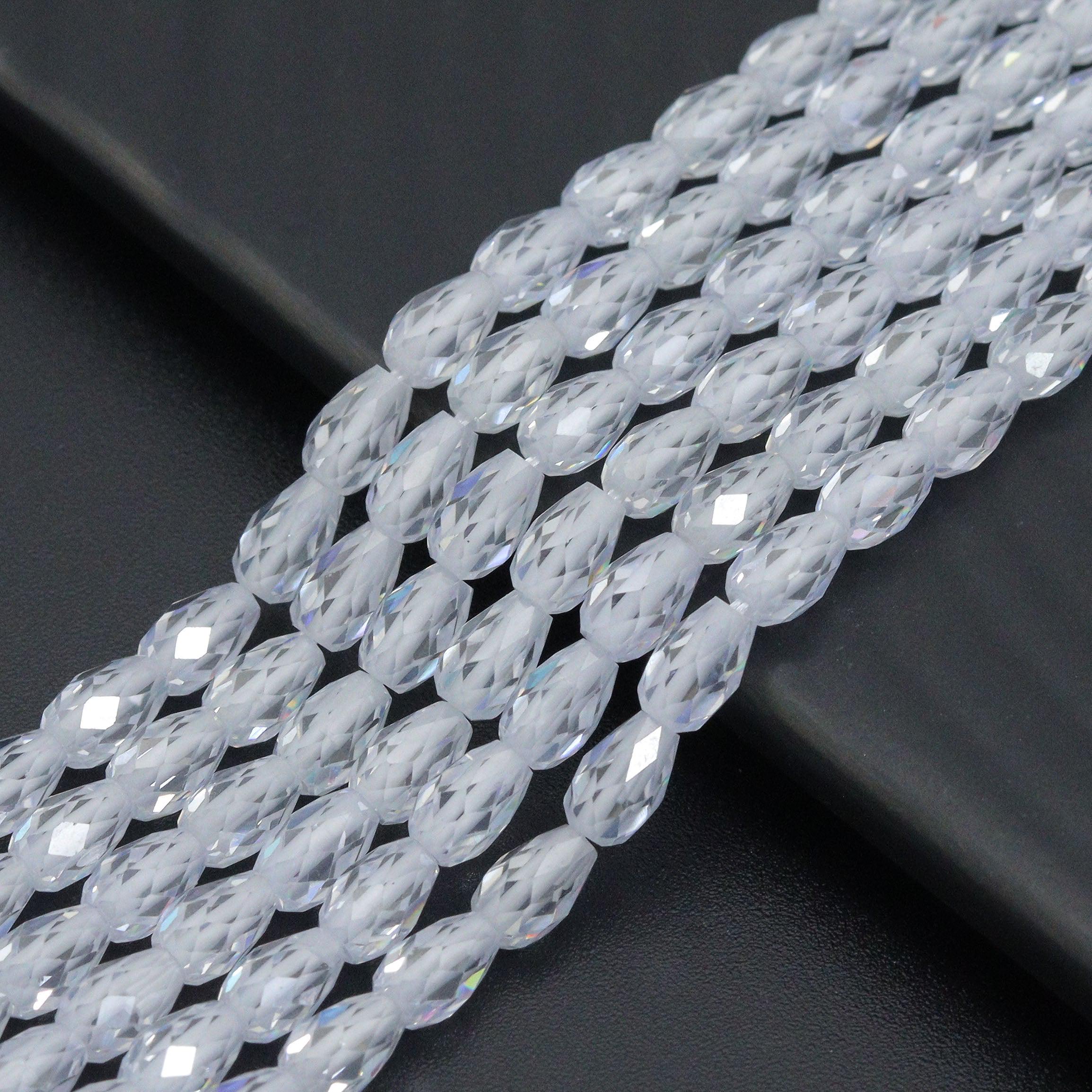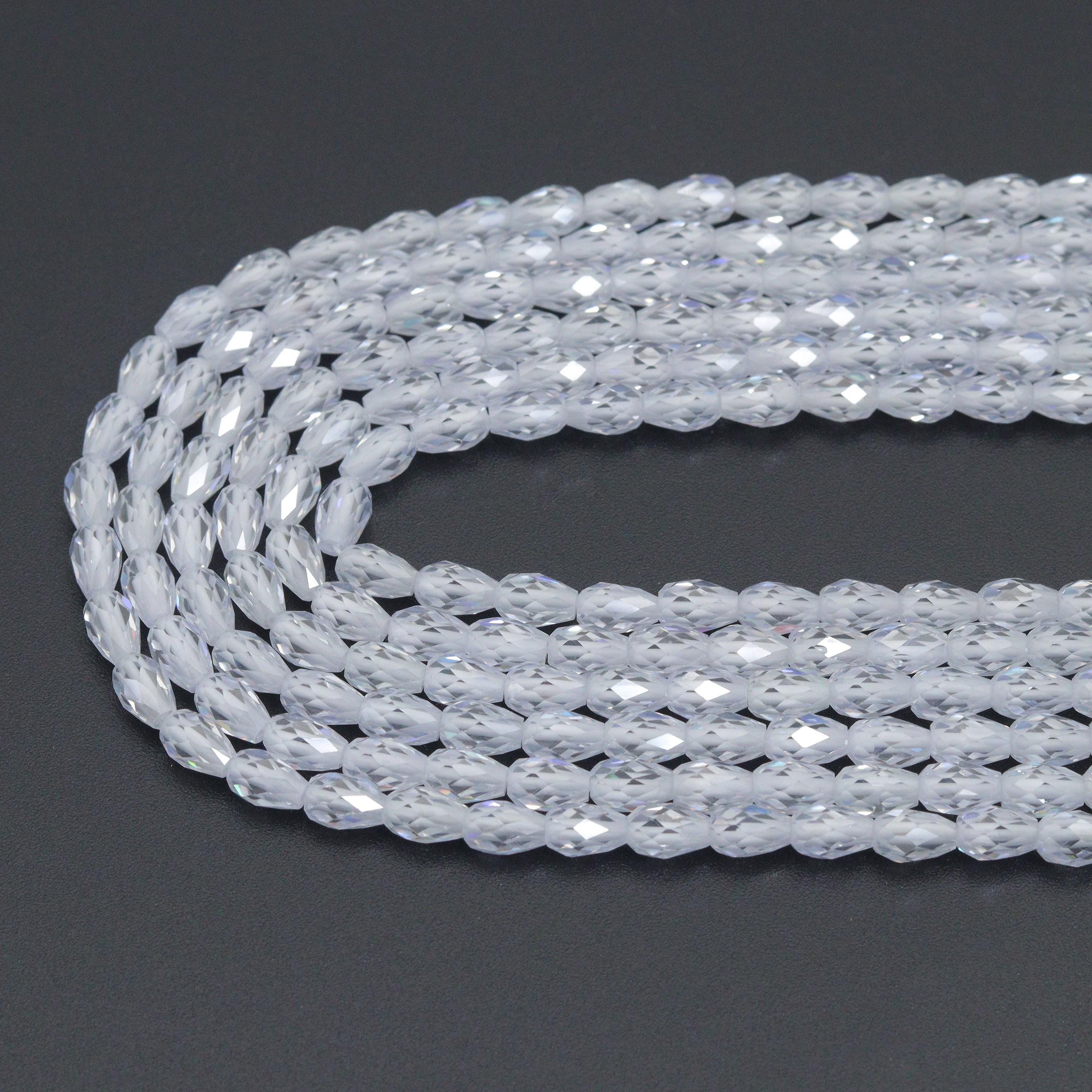 Listing price is for 1 strand Material: CZ Shape: Teardrop/Rice Style: Faceted Bead hole size:1mm Length: 15"-16" Size: Number of Beads/Strand: 4x6mm in diameter - about 57pcs/strand ------------------------------------------------------- Usage : For bracelet, necklace, or other crafts, jewelry makings.