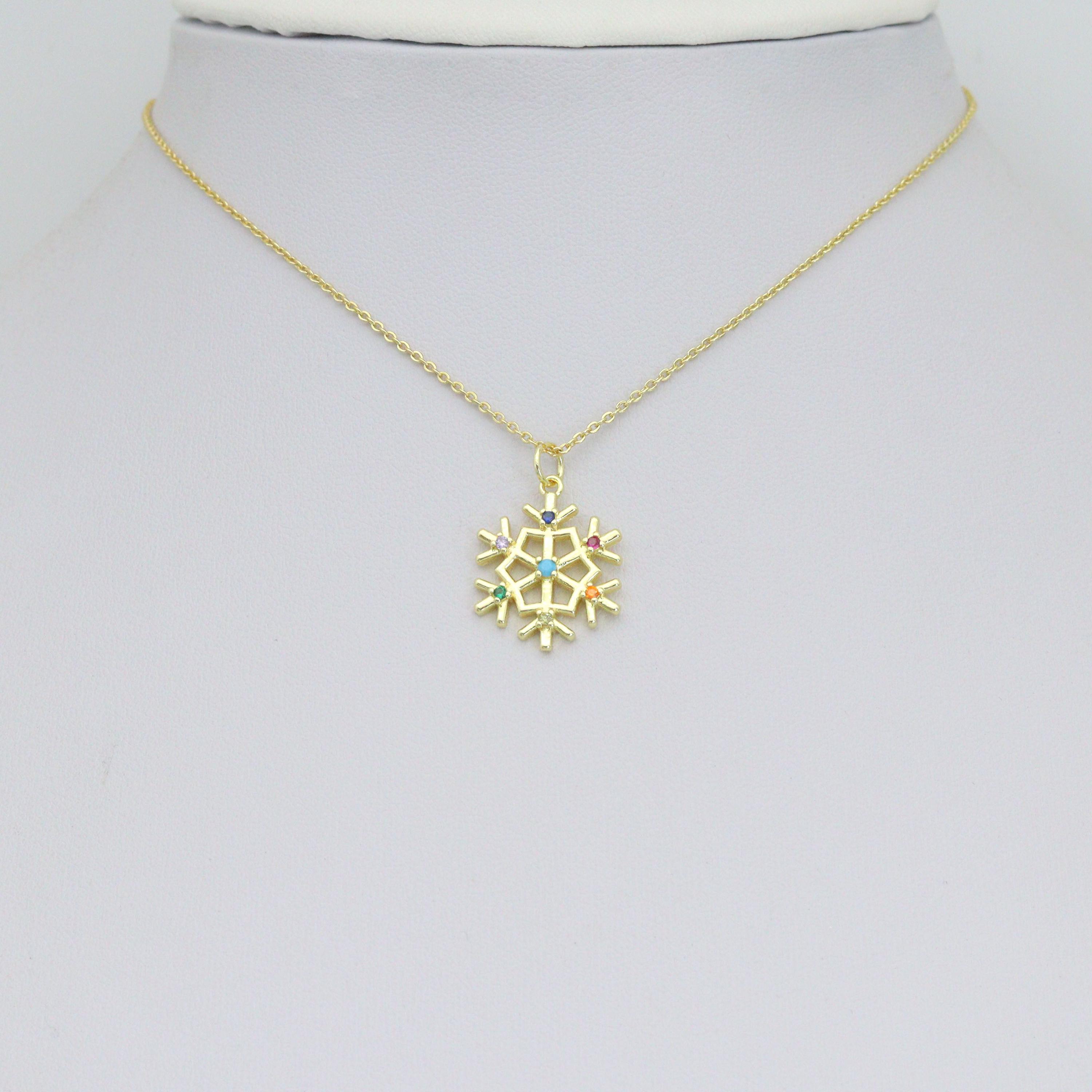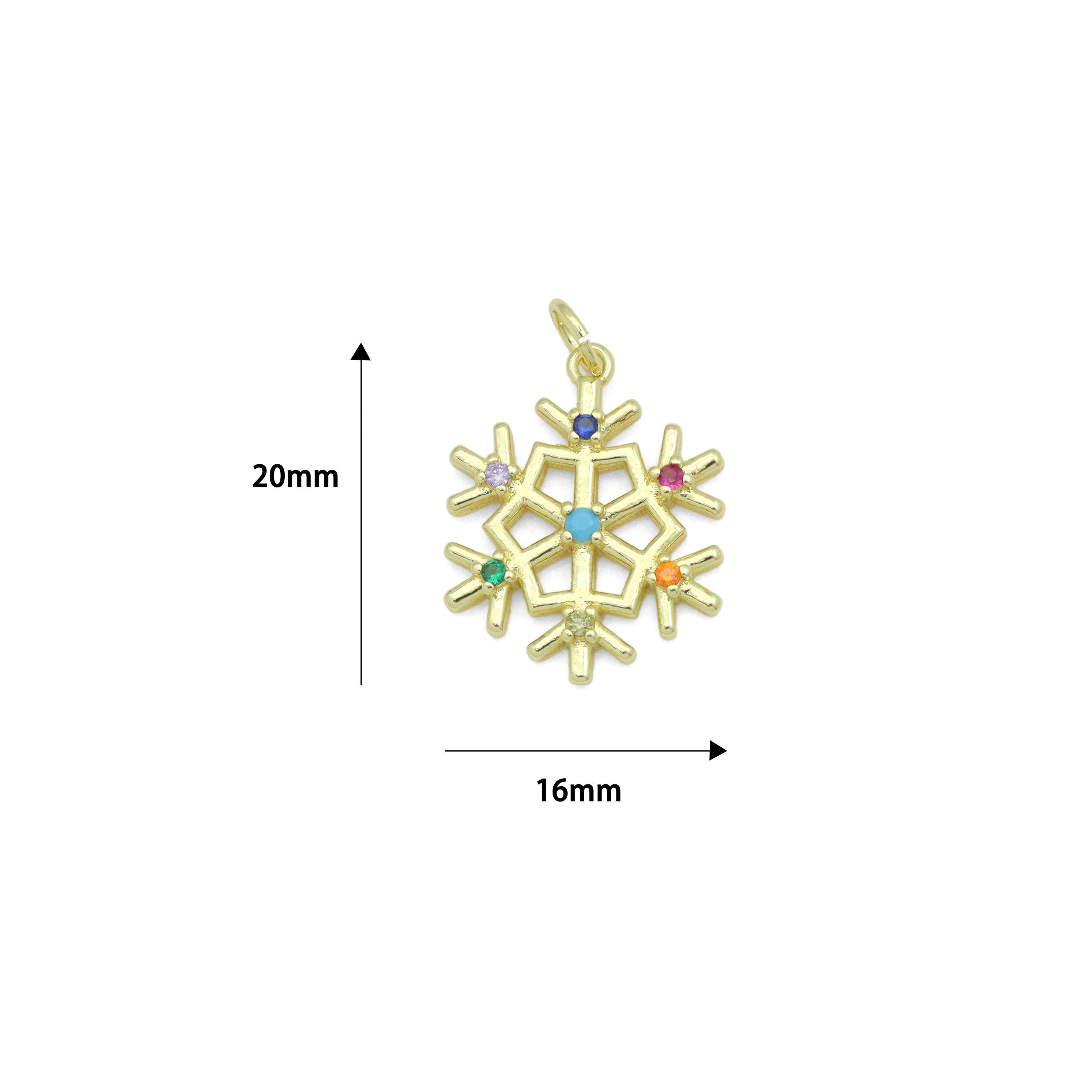 Colorful CZ Gold Silver Snowflake Charm Pendant, Sku#LX971