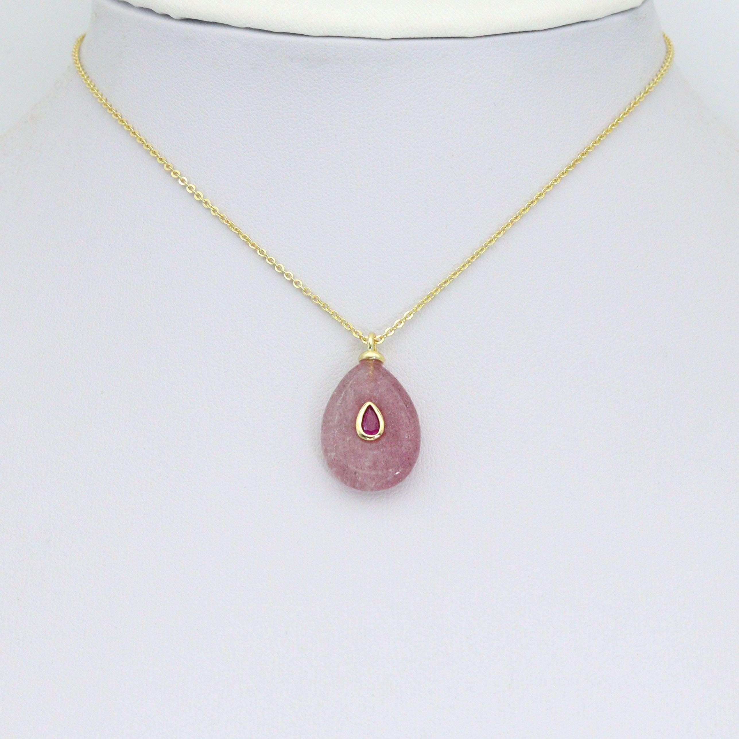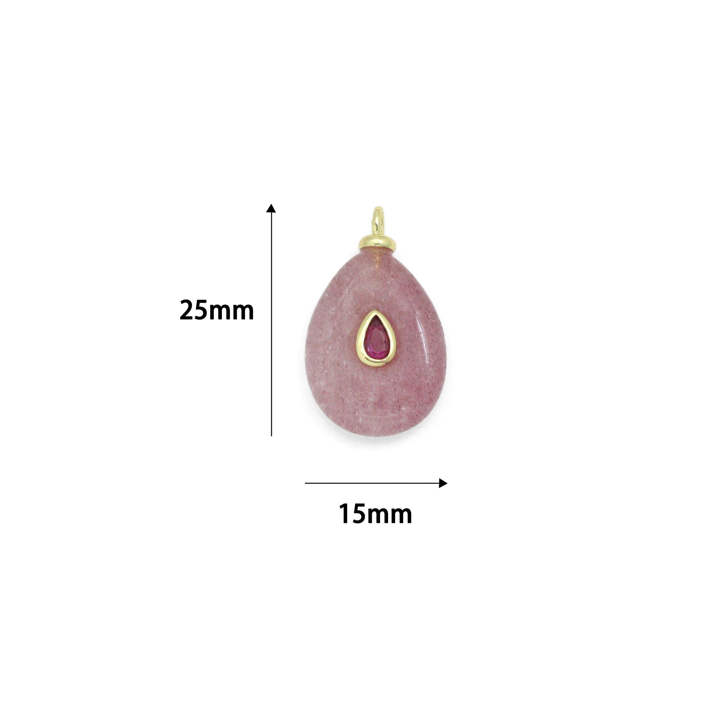 Strawberry QuartzTeardrop Stone Charm Pendant, Sku#Y1076